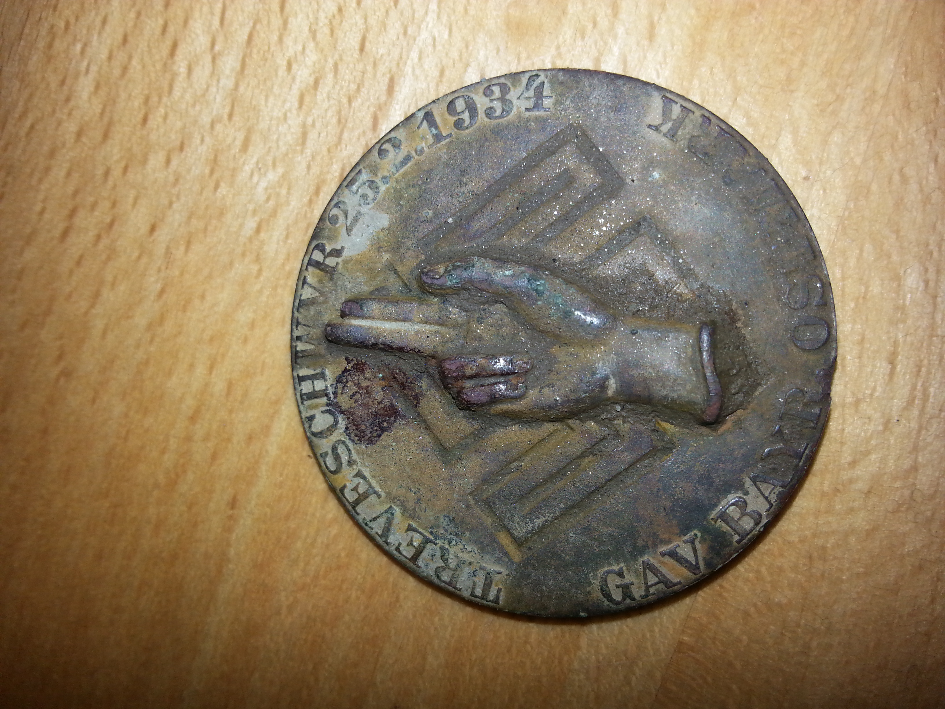 Cooles Abzeichen mit dem Aufdruck:"Treveschwvr 25.02.1934" oben und unten "Gav Bayr. Ostmark"