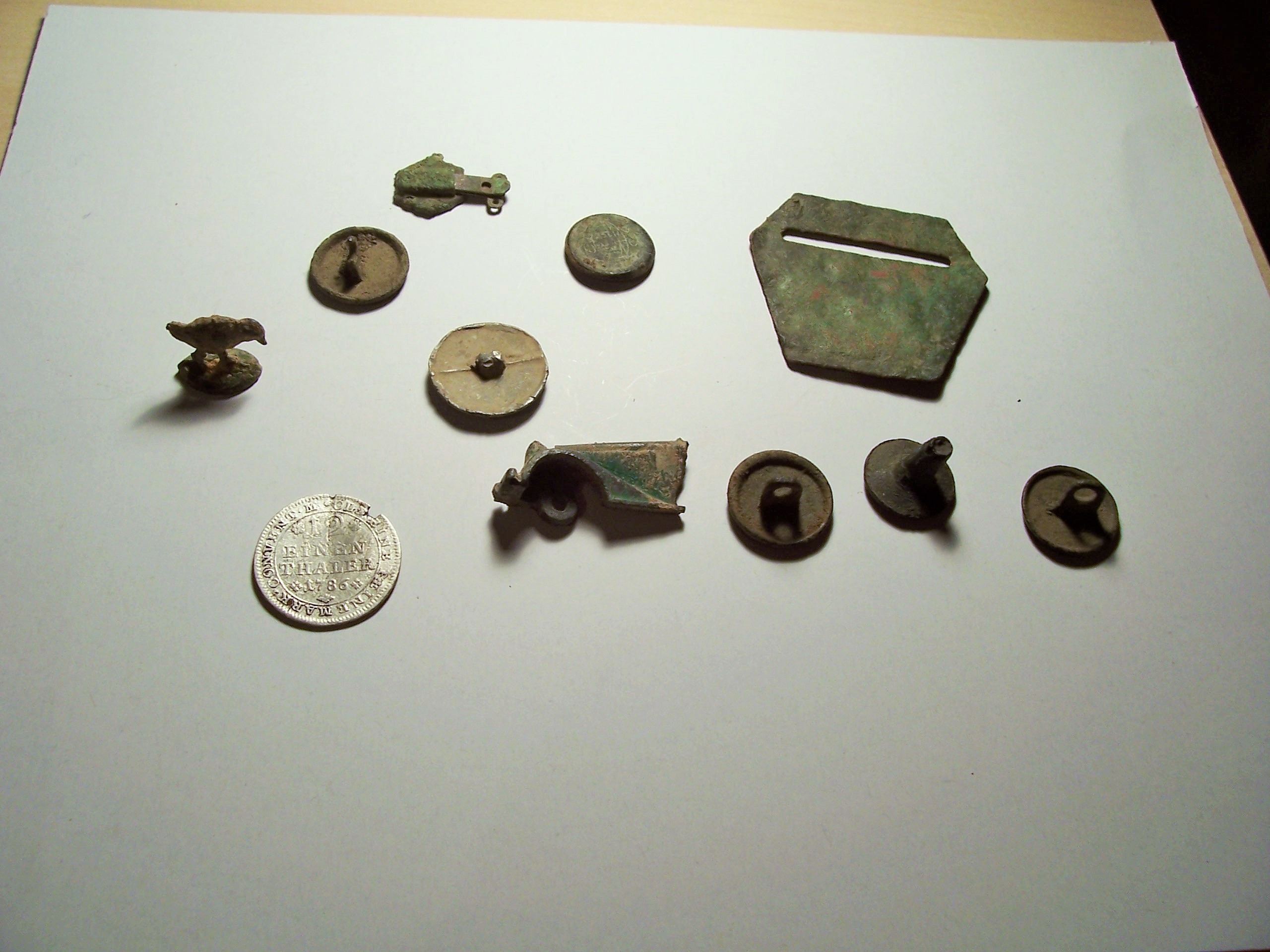 Ein paar Funde vom letzten We,,,1 Bleiknopf ca1650, 4 Knöpfe zw 17.-18.jh, vordere Kotflügel eines Spielzeugautos