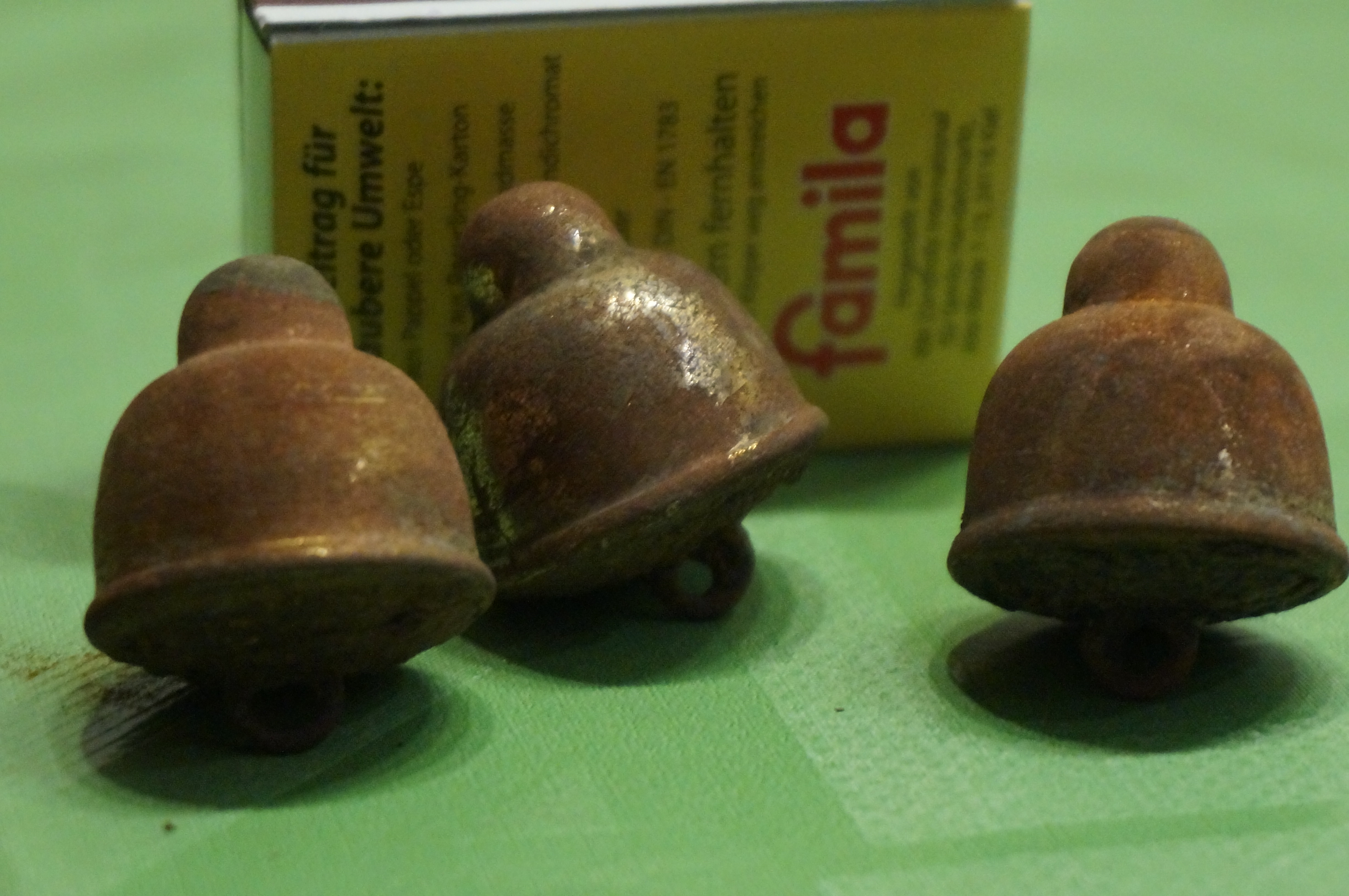 Was könnte das sein ? sieht aus wie knöpfe, Kupfer oder Messing , innen hol . Ich glaube aber es sind keine Knöpfe. Aber was dann ?