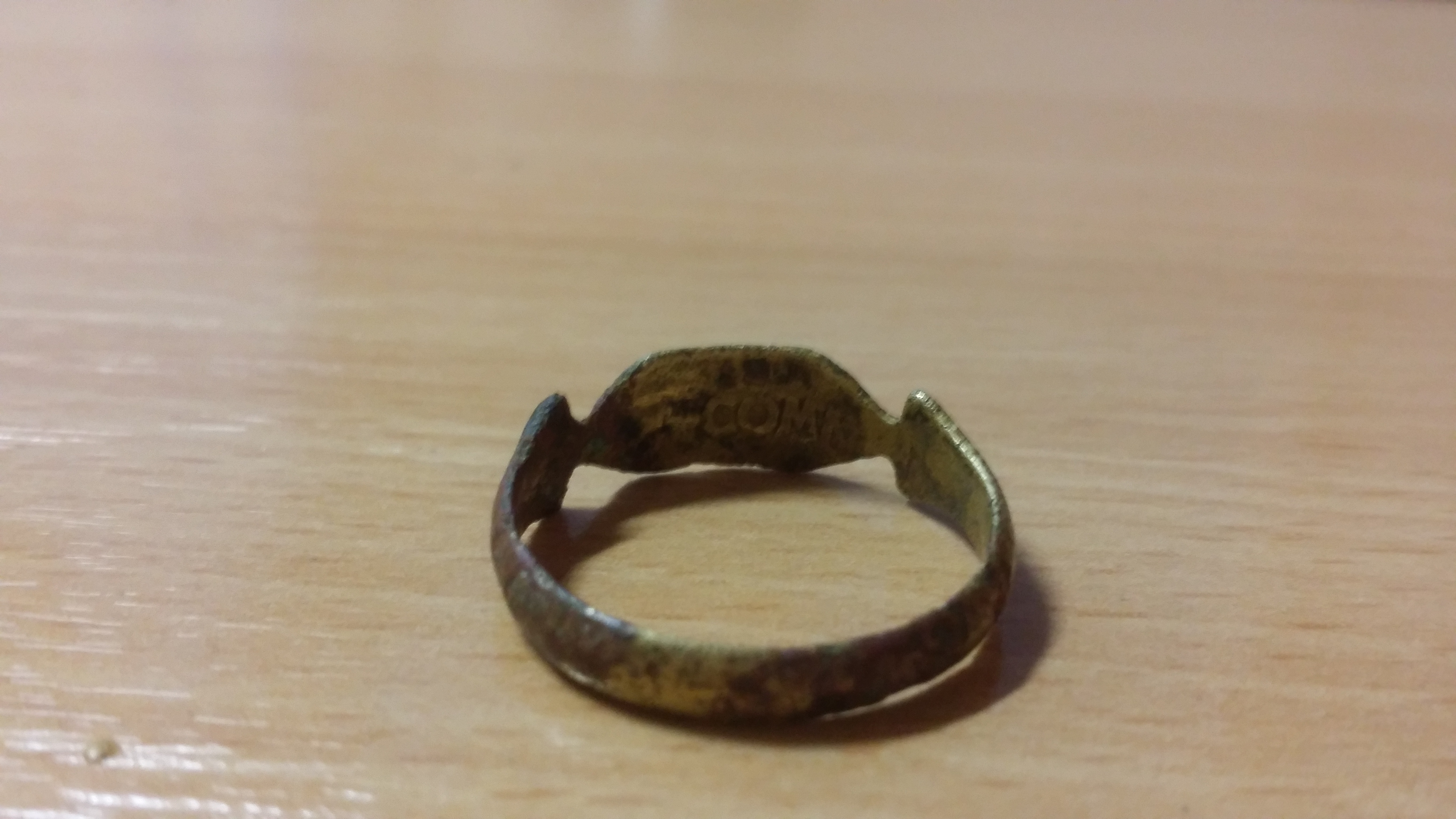 Innen hat er eine Inschrift mit einigen Buchstaben.