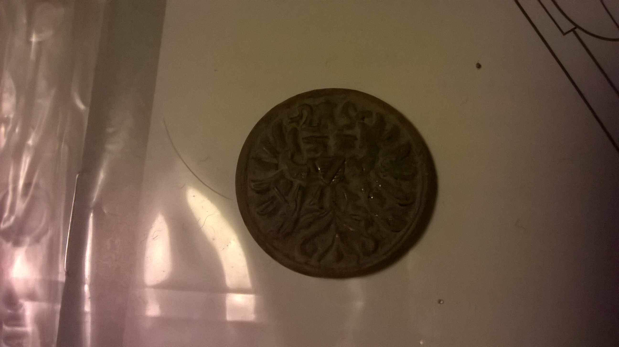 Das Problem beim Doppeladler mit brustschild ist, das es in vielen Regionen verwendet wurde. Wird sich aber dennoch um einen uniformsknopf handeln. Von der zeitstellung her aber gleich einzuordnen.
