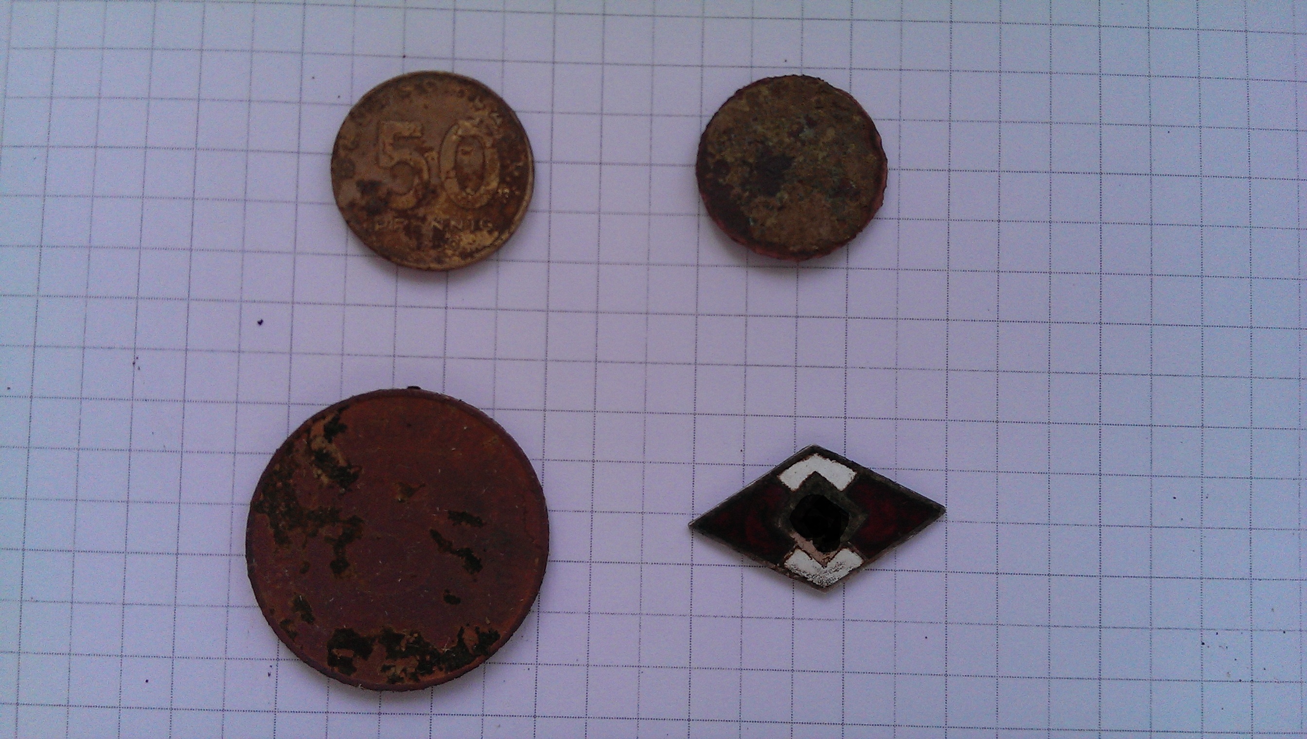 Neben sehr viel Schrott und Weißblechdosen ( hoher Leitwert) sind folgende Funde aus dem Boden gekommen.