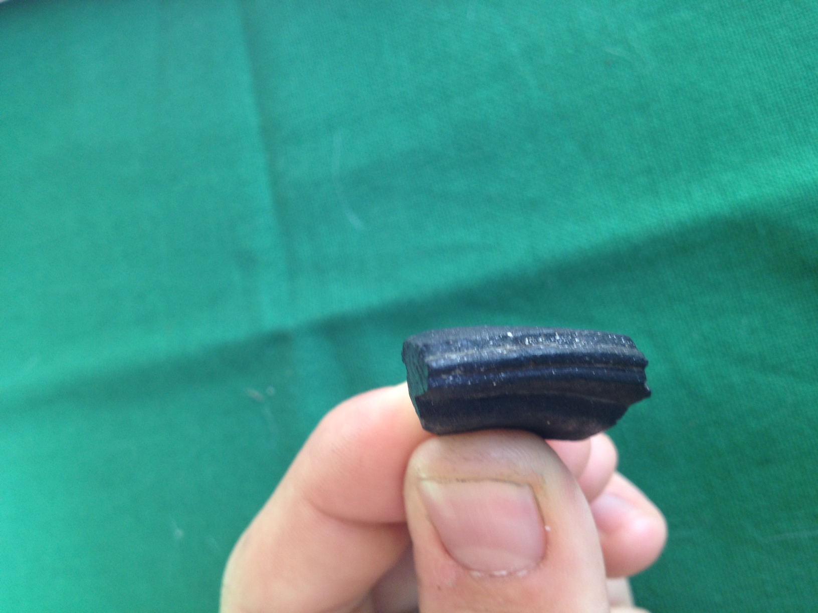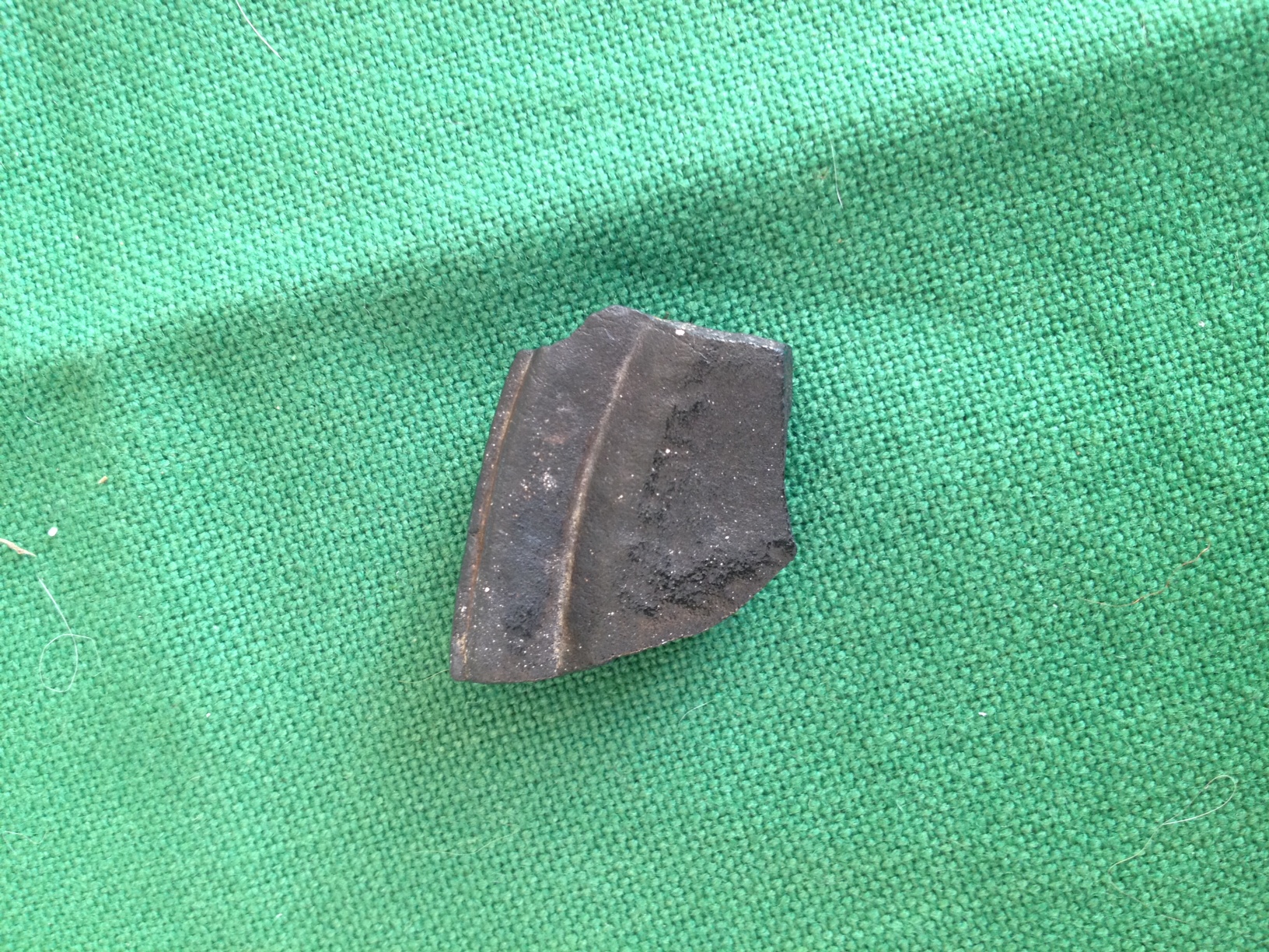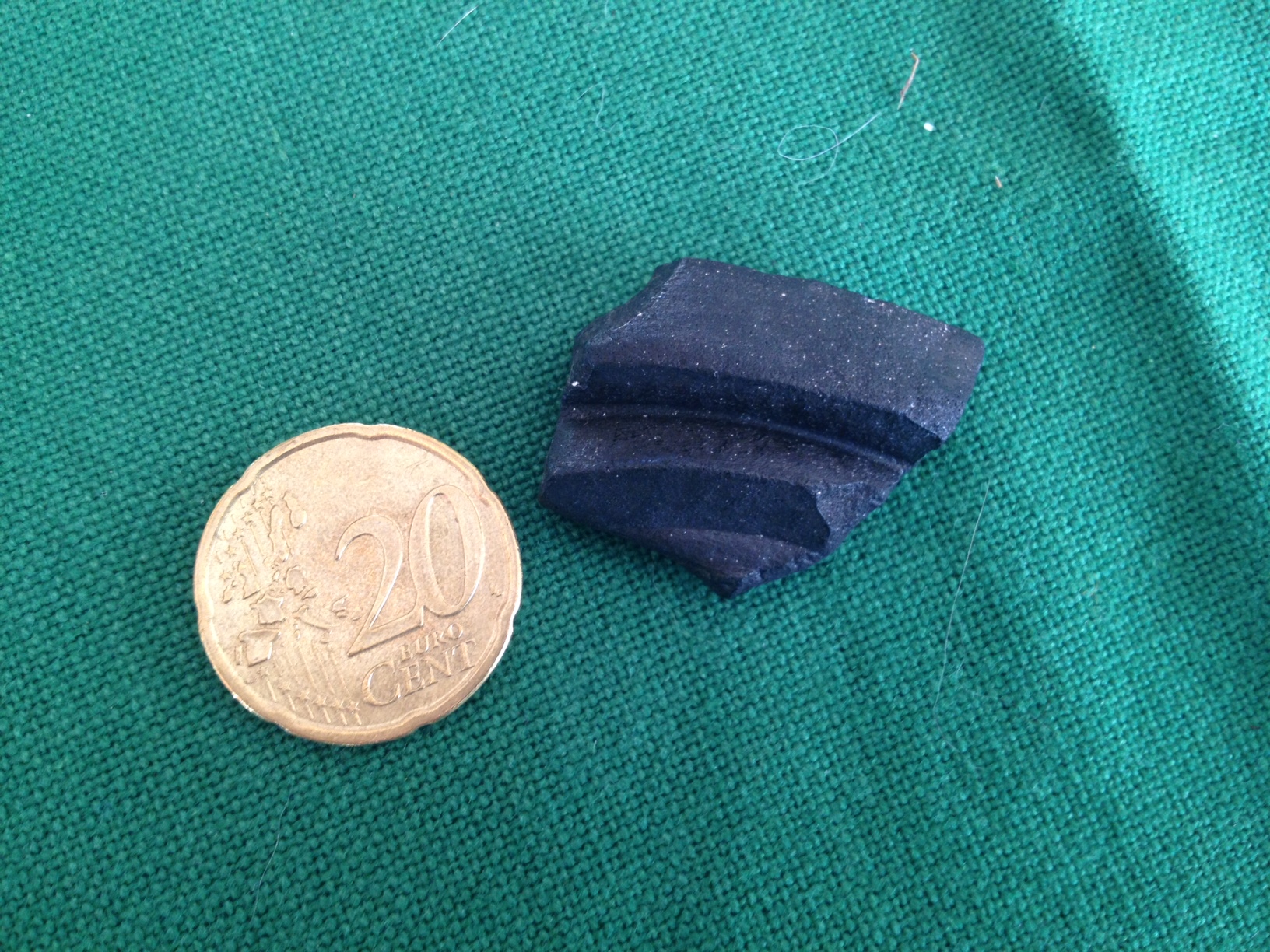Ich kann das Material leider nicht bestimmen, aber sieht für mich vom Mensch gemacht aus. Vielleicht ein Stück von einer Schale oder einem Topf?