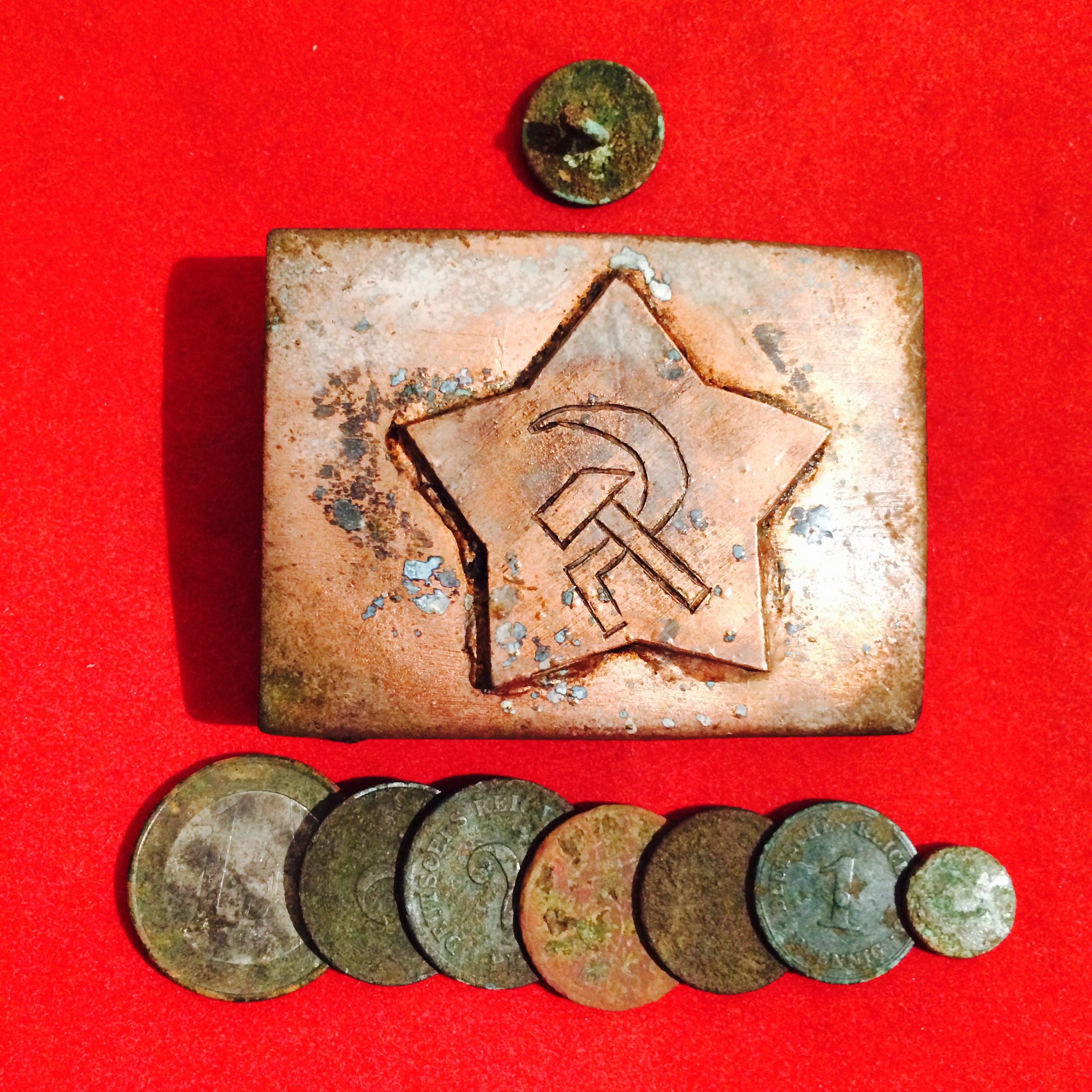 ja, das Koppelschloß ist interessant. Ein Umbau aus einem M95er Schloß der "alten Armee" bis 1918, Weimar eher nicht, da die Dornhülse dann meistens aus Stahl war. Ich würde vermuten aus der "Kampfzeit", so 1918-1932 von einem Angehörigen der KPD.