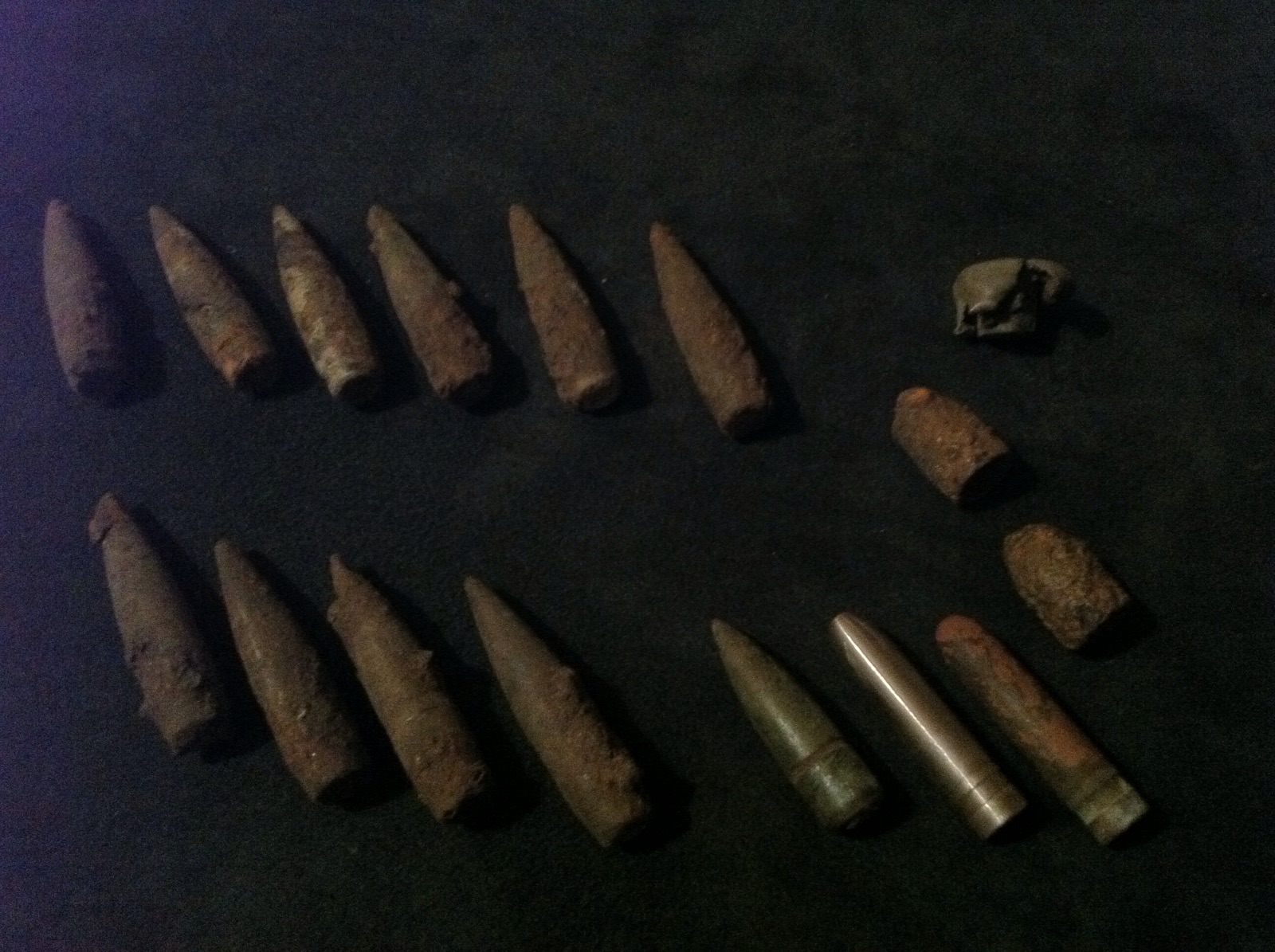 Ganz interessant finde ich das aufgepilzte US.30 Carbine Projektil.
