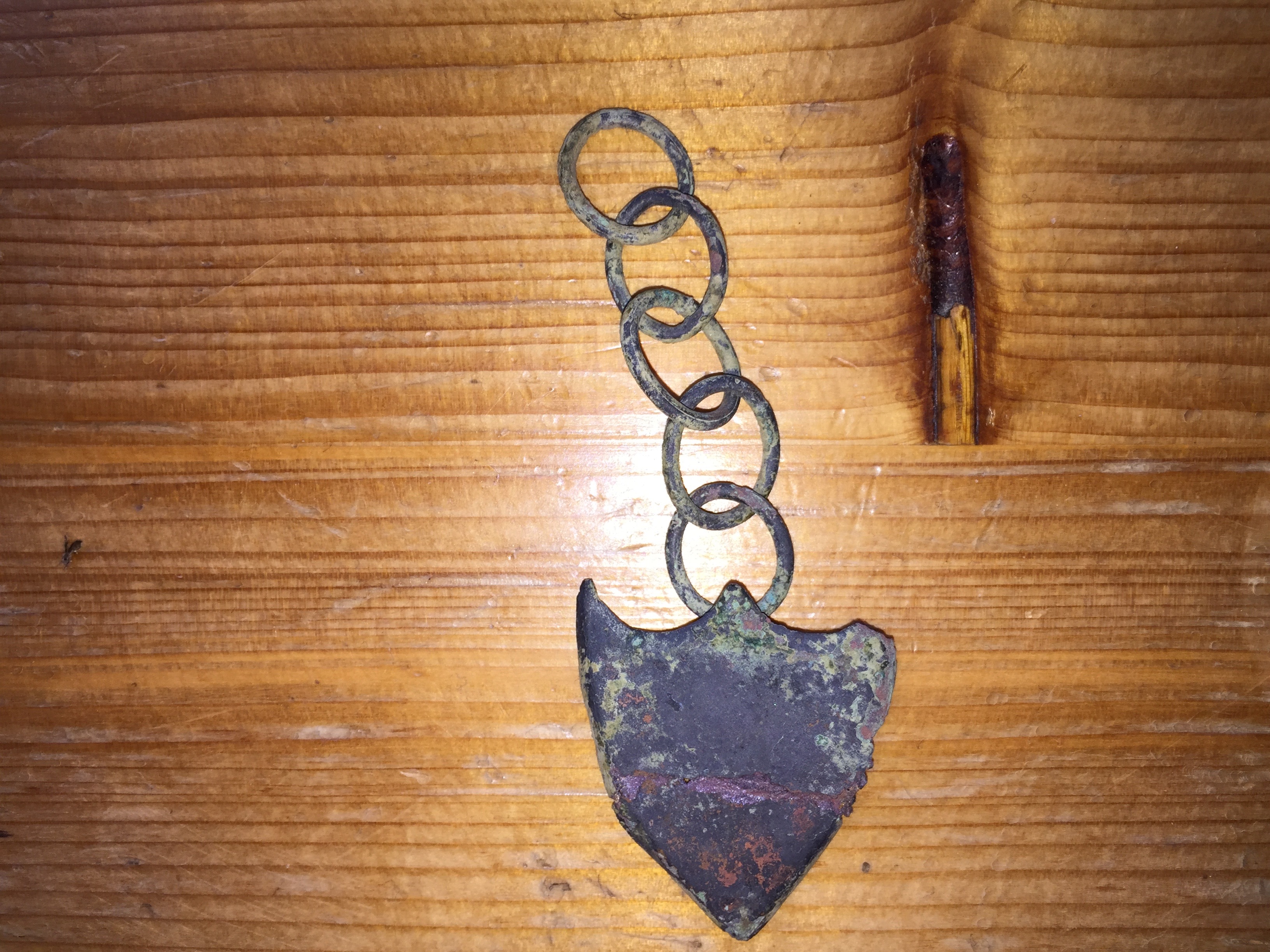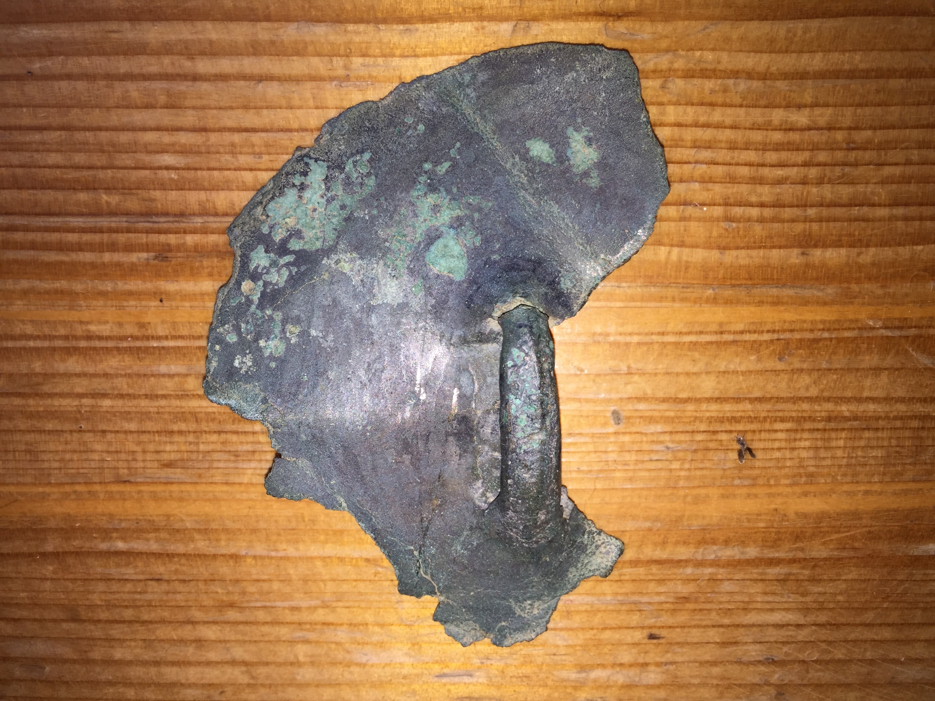 ich bin relativ neu im Forum und will euch zwei meiner Funde zeigen, die ich bisher nur unzureichend bestimmen konnte. Bei dem schildartigen Ding mit der Kette könnte es sich laut Aussage eines Bekannten um eine Fibel handeln; beim zweiten Teil um etwas vom Zaumzeug bei Pferden? Die "Fibel" ist wahrscheinlich aus Kupfer, das "Zaumzeug" meiner Meinung nach aus Bronze (der dunklen grünlichen Färbung wegen). Es wäre sehr schön, wenn ihr mir weiterhelfen könnt. Vielen Dank.