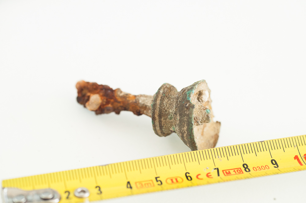 Das längliche Fundstück mit der verrosteten Spitze habe ich am Donaustrand gefunden. Ich habe keine Ahnung, was das sein könnte.