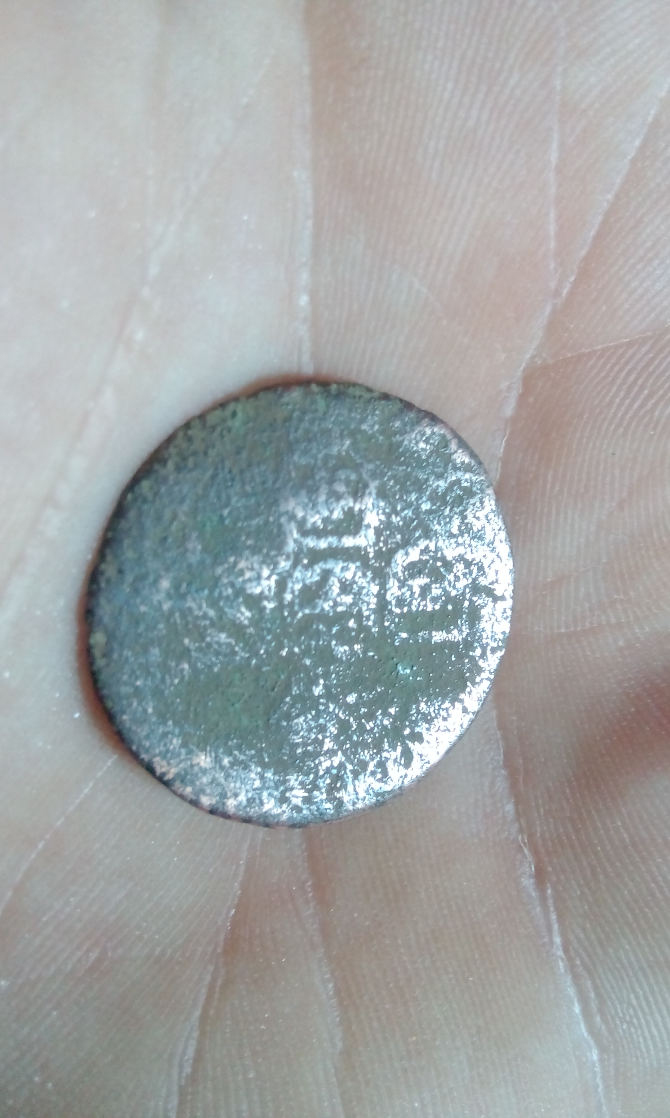 Kupfer Münze 2€ groß die eine Seite Wappen die andere eine Art kreuz aus Buchstaben oder so