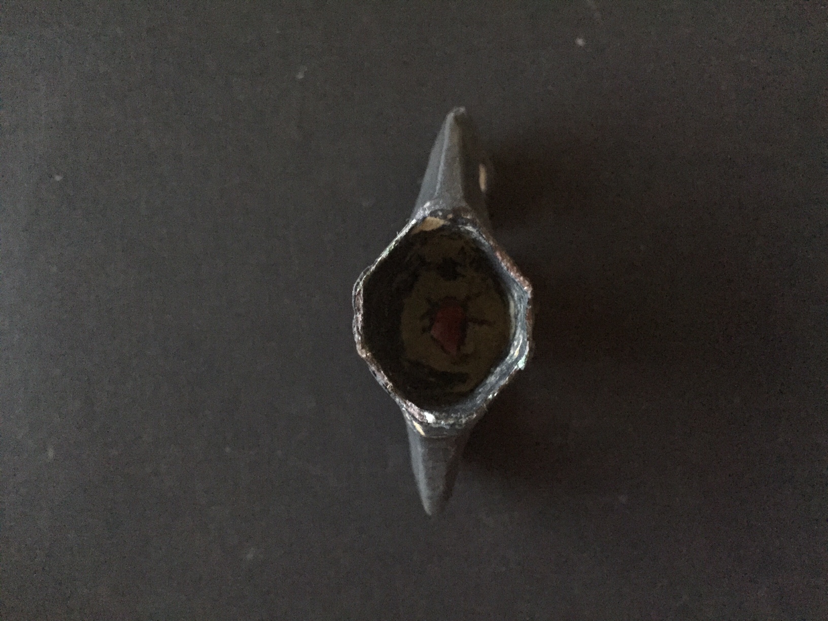 Ich Tipe mal auf ein Messer oder Dolch Griff . Was es für Material ist kann ich nicht sagen aber kein Eisen