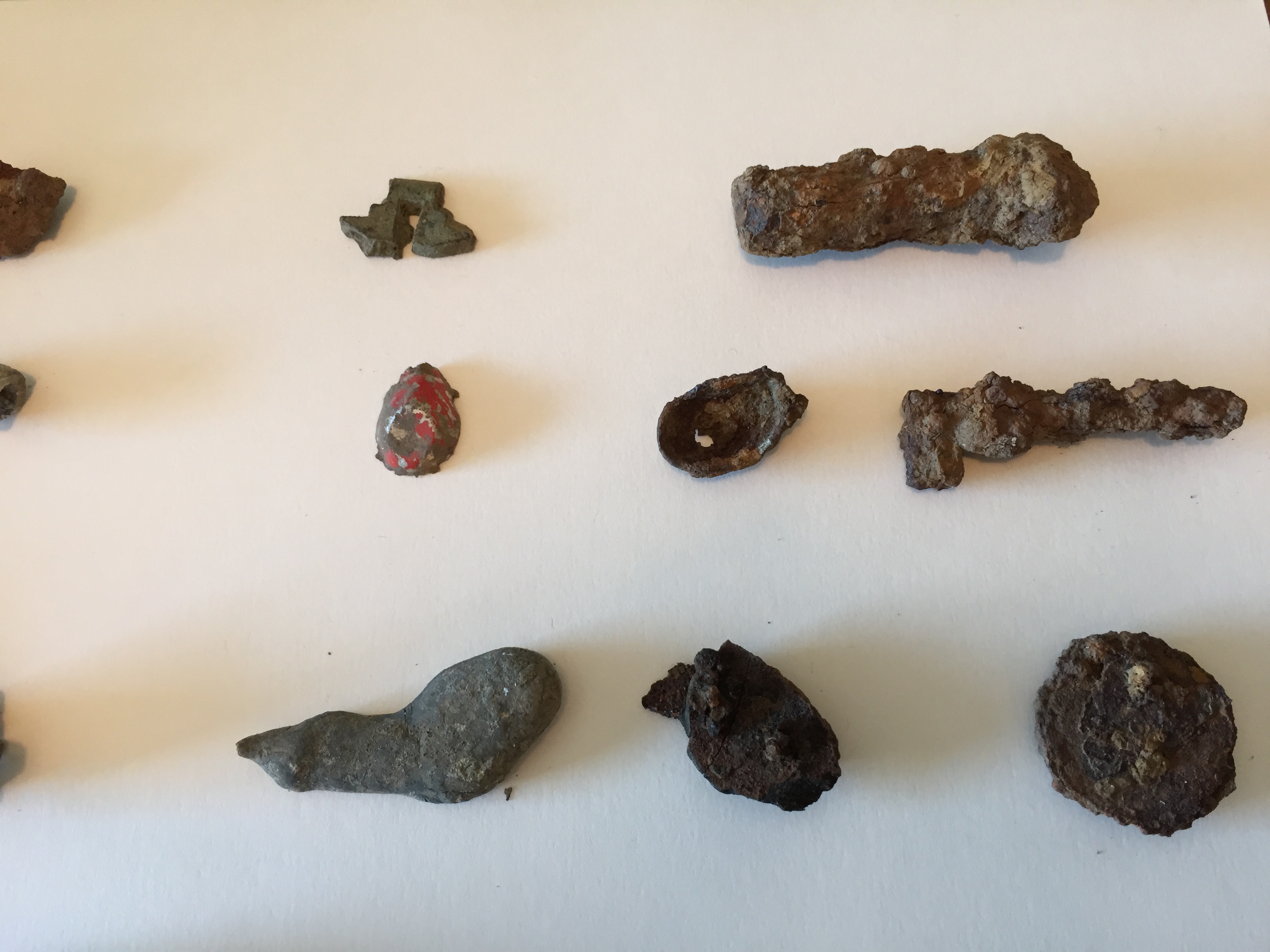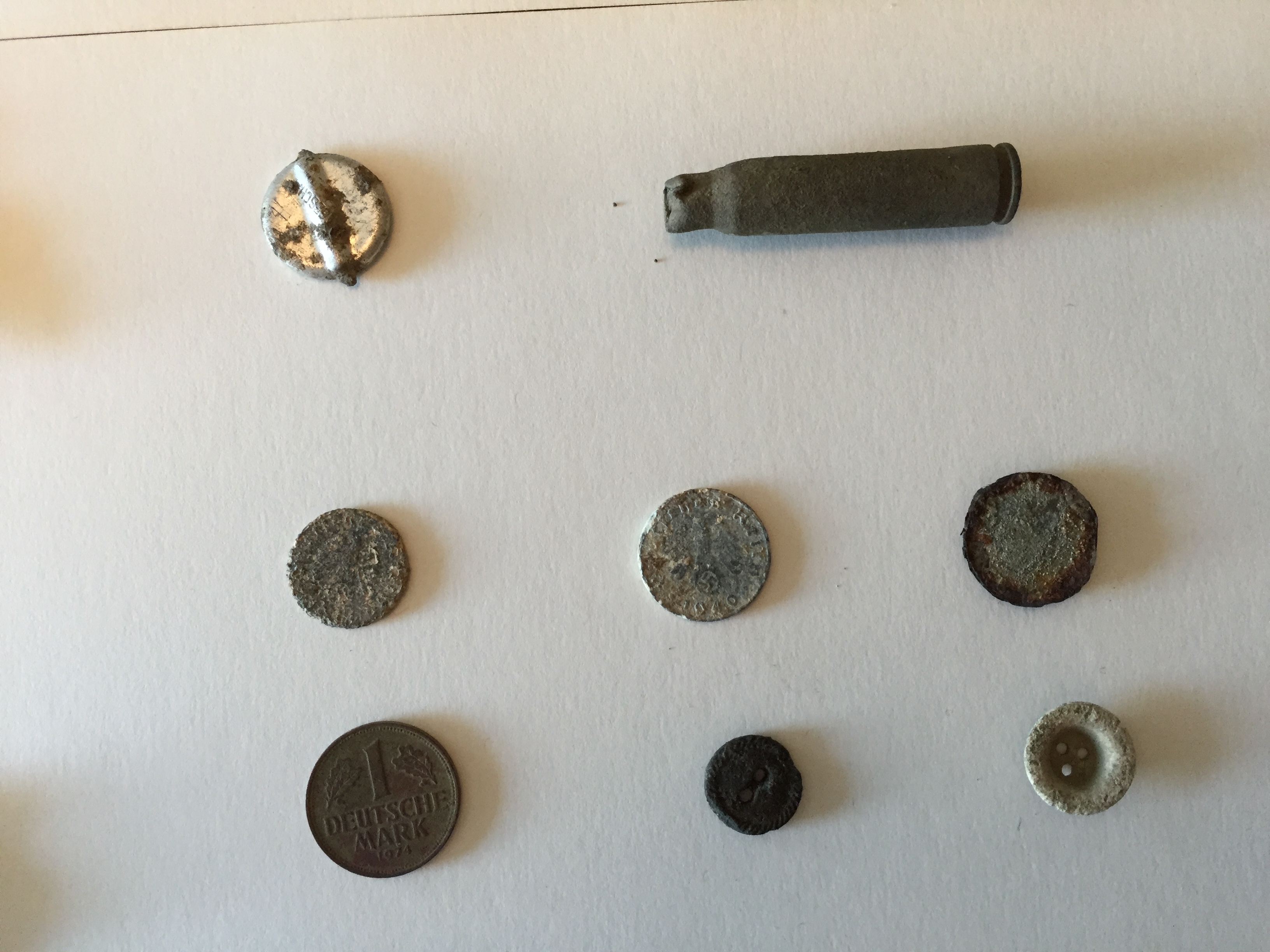 Neben den ganzen Sachen habe ich immer wieder geschmolzenes Metall gefunden, eins von den Dingern hab ich auch auf den Fotos, das liegt echt zu Hauf unter der Erde.