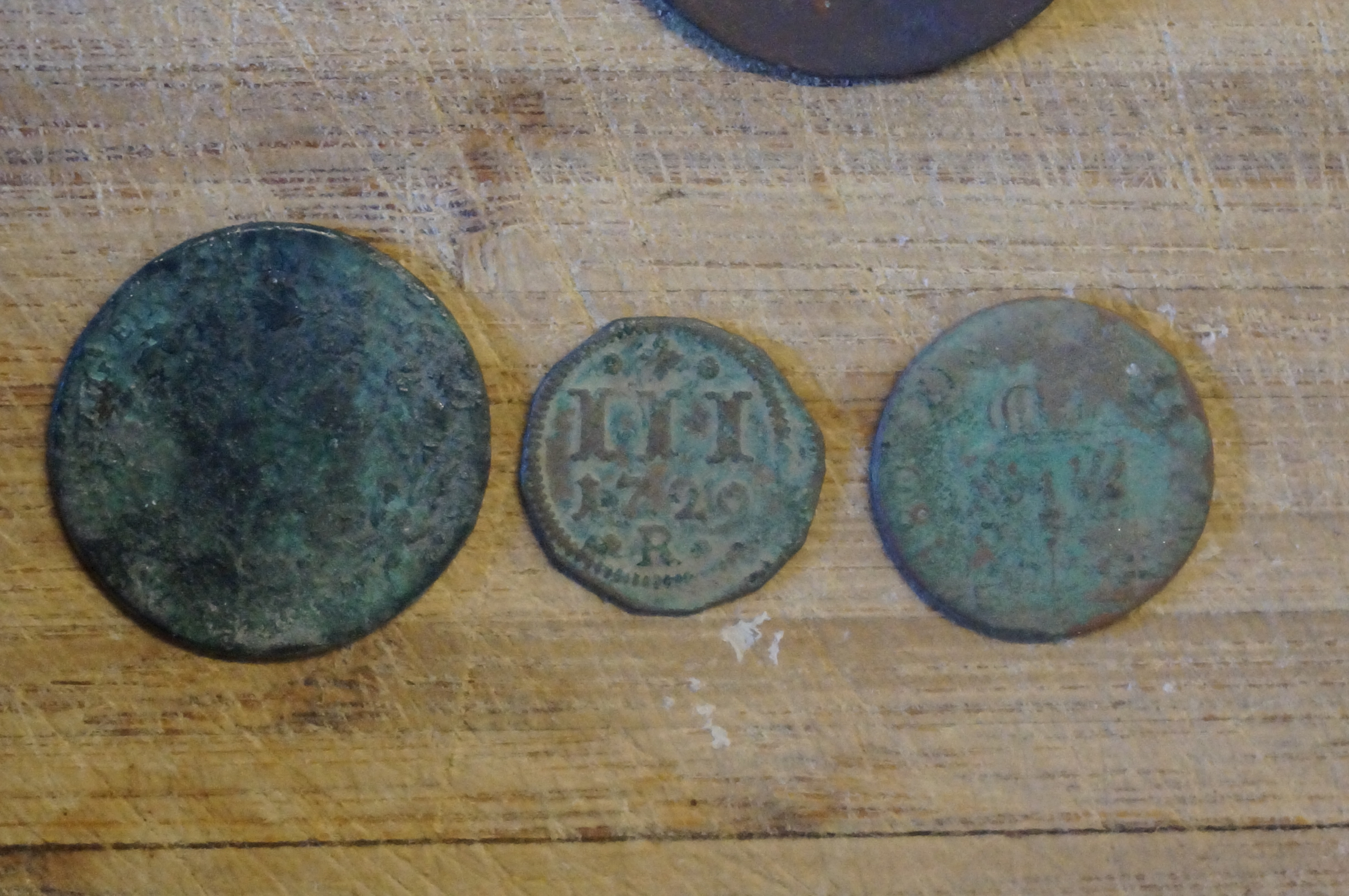 die münze reinigen,wenn die münze aus silber wäre,könnte man es versuchen.es ist etwas zu erkennen unter der kruste.: UND Achtzig Eine oder so.