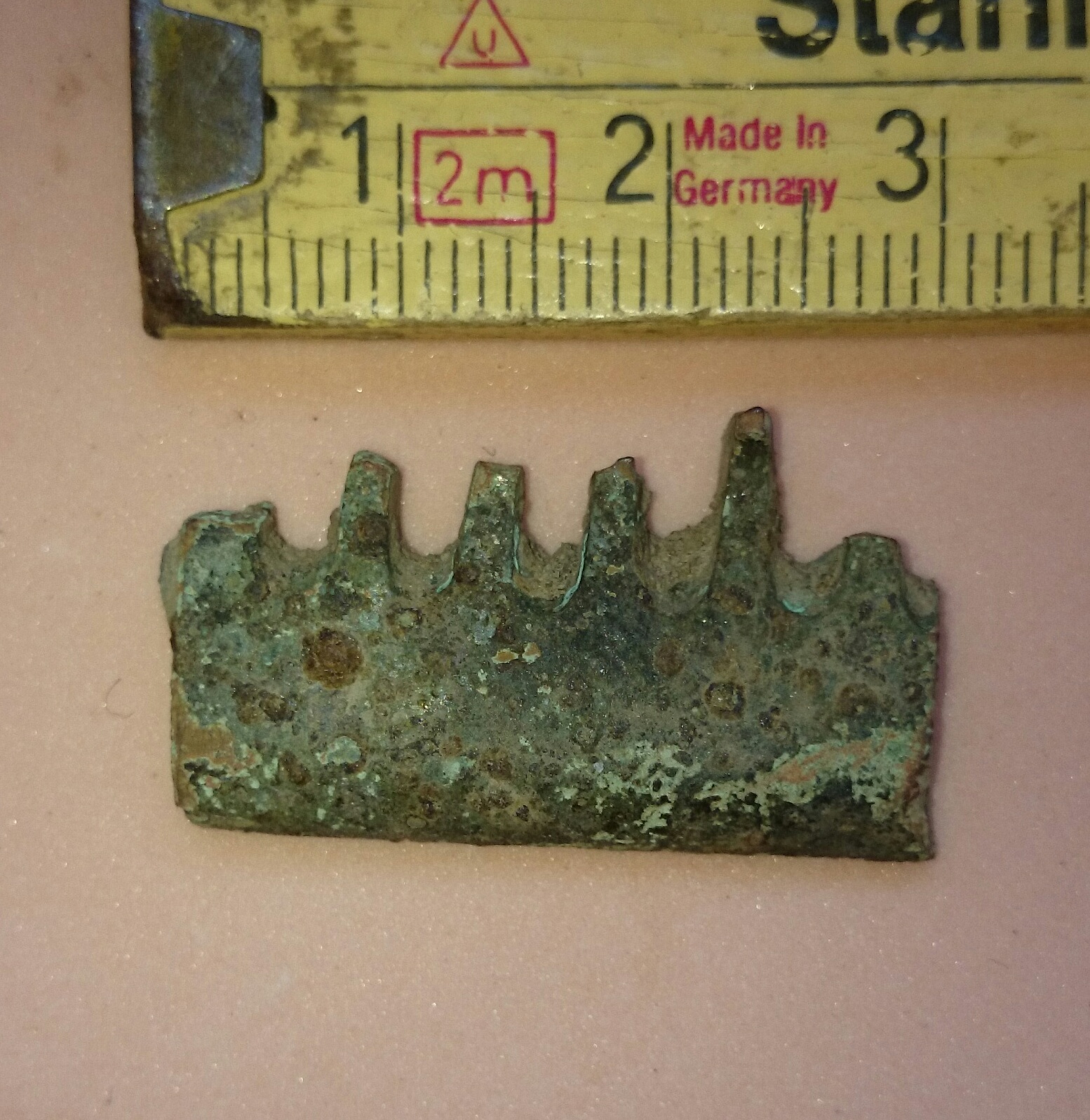 Erinnert mich irgendwie an ein Stück Kamm...aus Alu hab ich sie auch schon gefunden,aber aus Bronze???