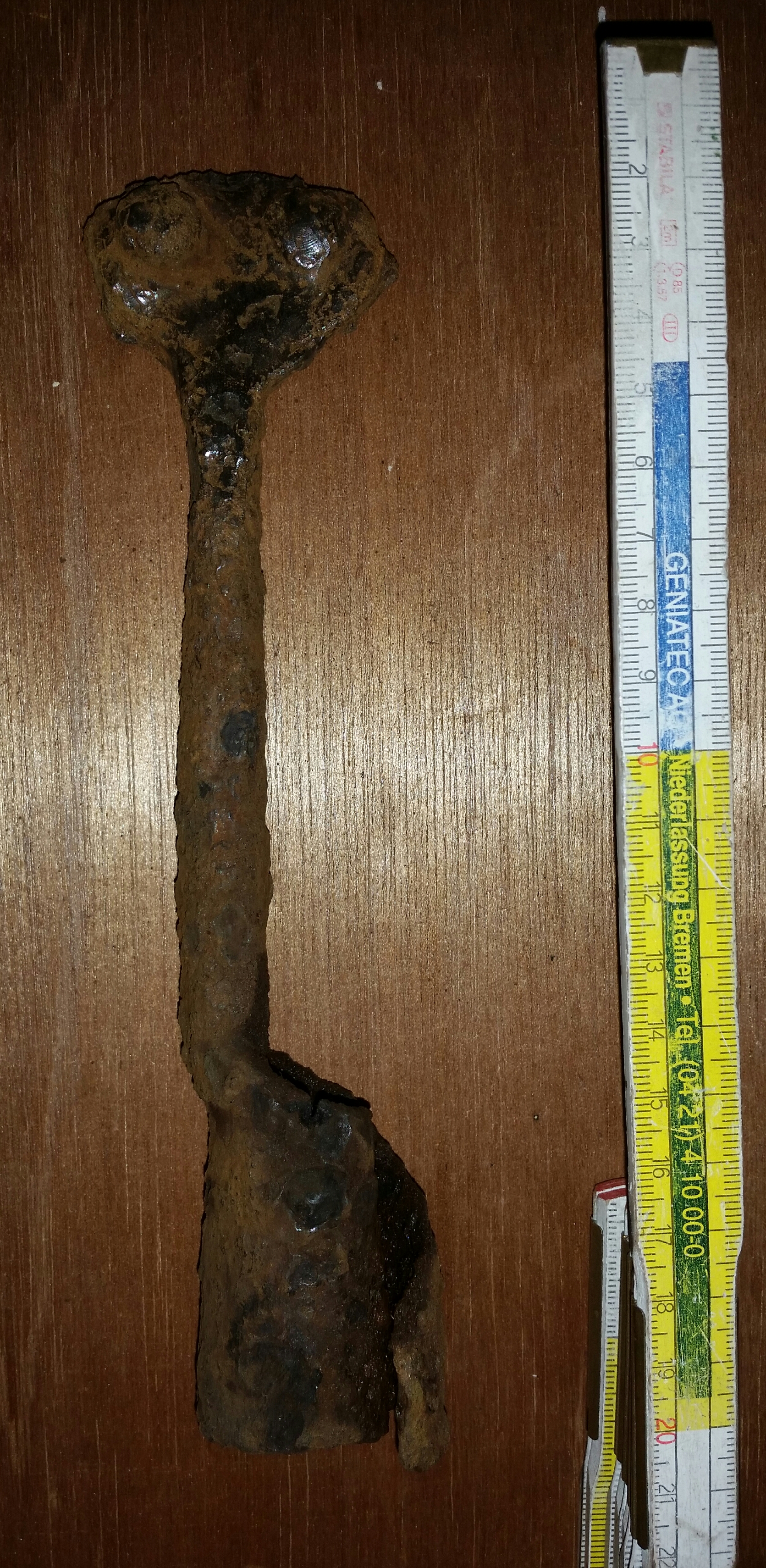 Hab heute dieses Teil im Wald gefunden und bin mit nicht sicher um was es sich dabei handelt. Mein erster Gedanke war, es ist ein Teil von einer Stangenwaffe. Wobei die Klinge bzw. die Spitze fehlt.