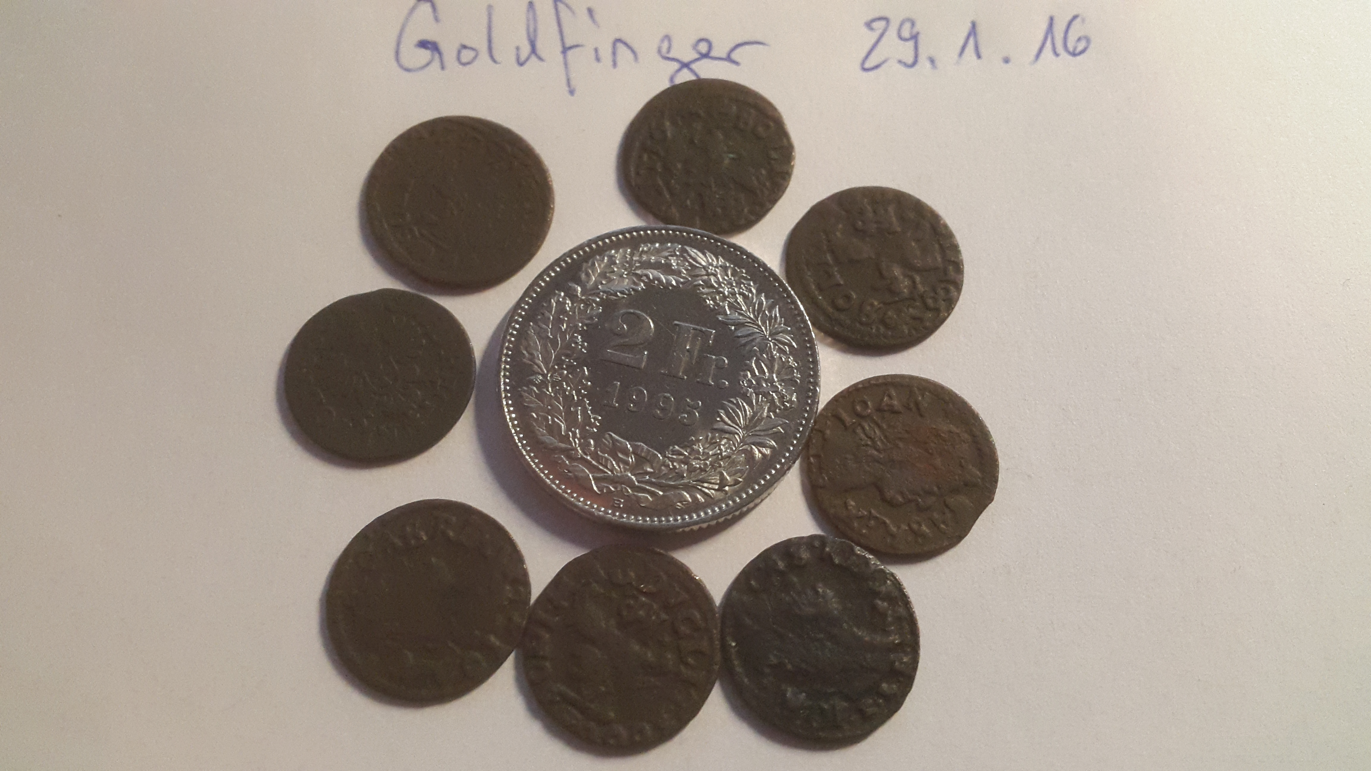 Wallenstein hat geschrieben:Das ist ein gemischter Hort. Die Münze in der Mitte hat natürlich nichts mit den anderen zu tun. Ich vermute die sind Jahrgang 17xx .