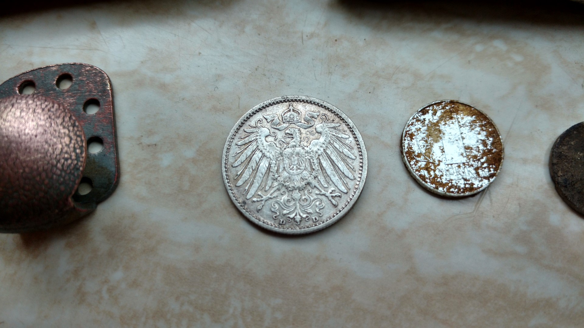 Knapp daneben lag noch eine Silbermark von 1905, welche sich nun gut neben meiner halben Silbermark macht.