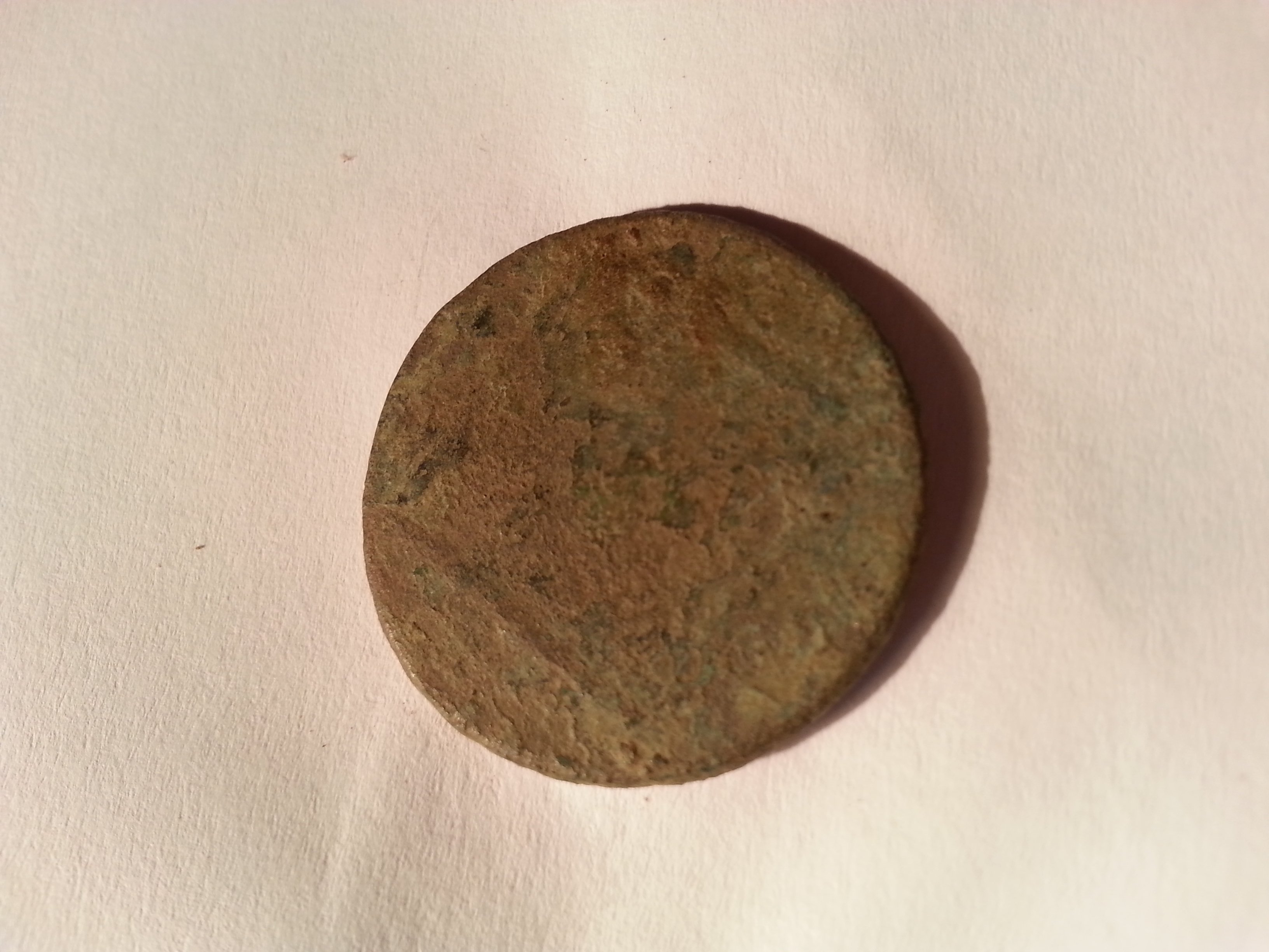 weitere Bilder Bronze- oder Kupfermünze: Vorderseite: Kopf (vermutlich Frau), lesbar ..rst von Sa..., Rückseite: Raute