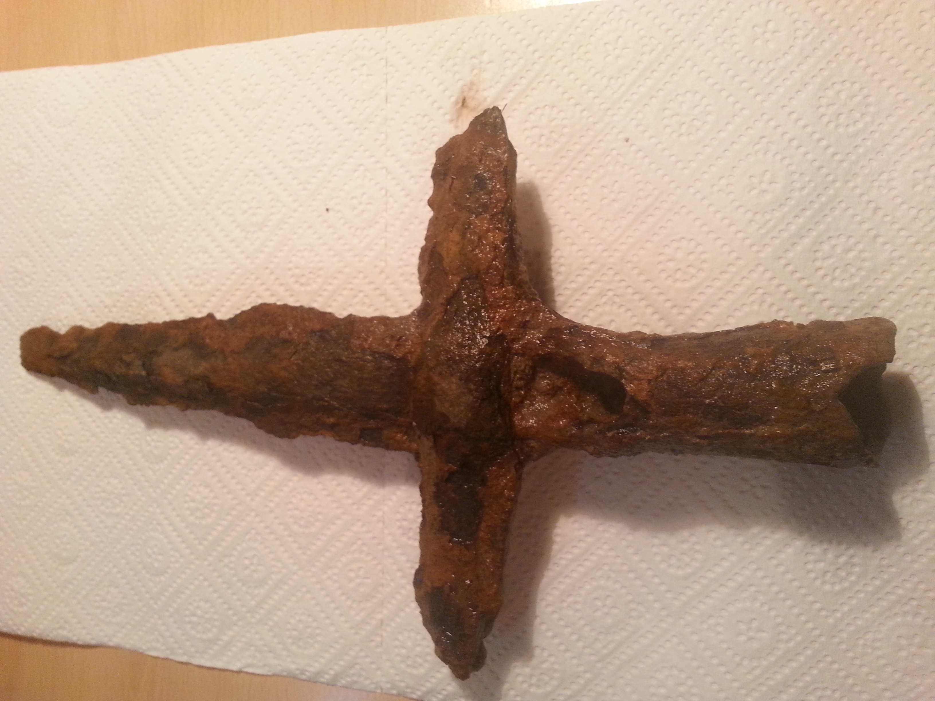 kann jemand sagen was das sein könnte? Es ist 35 cm lang und 20 cm breit und natürlich aus Eisen. Es war wohl an einem Holzstab befestigt. Weitere Funde waren eine Gürtelschnalle, Musketenkugeln und so weiter nichts besonderes. Oberhalb der Wiese befindet sich eine "Bauernschanze", welche aber nicht als rotes Gebiet markiert ist. Passt das zeitlich?