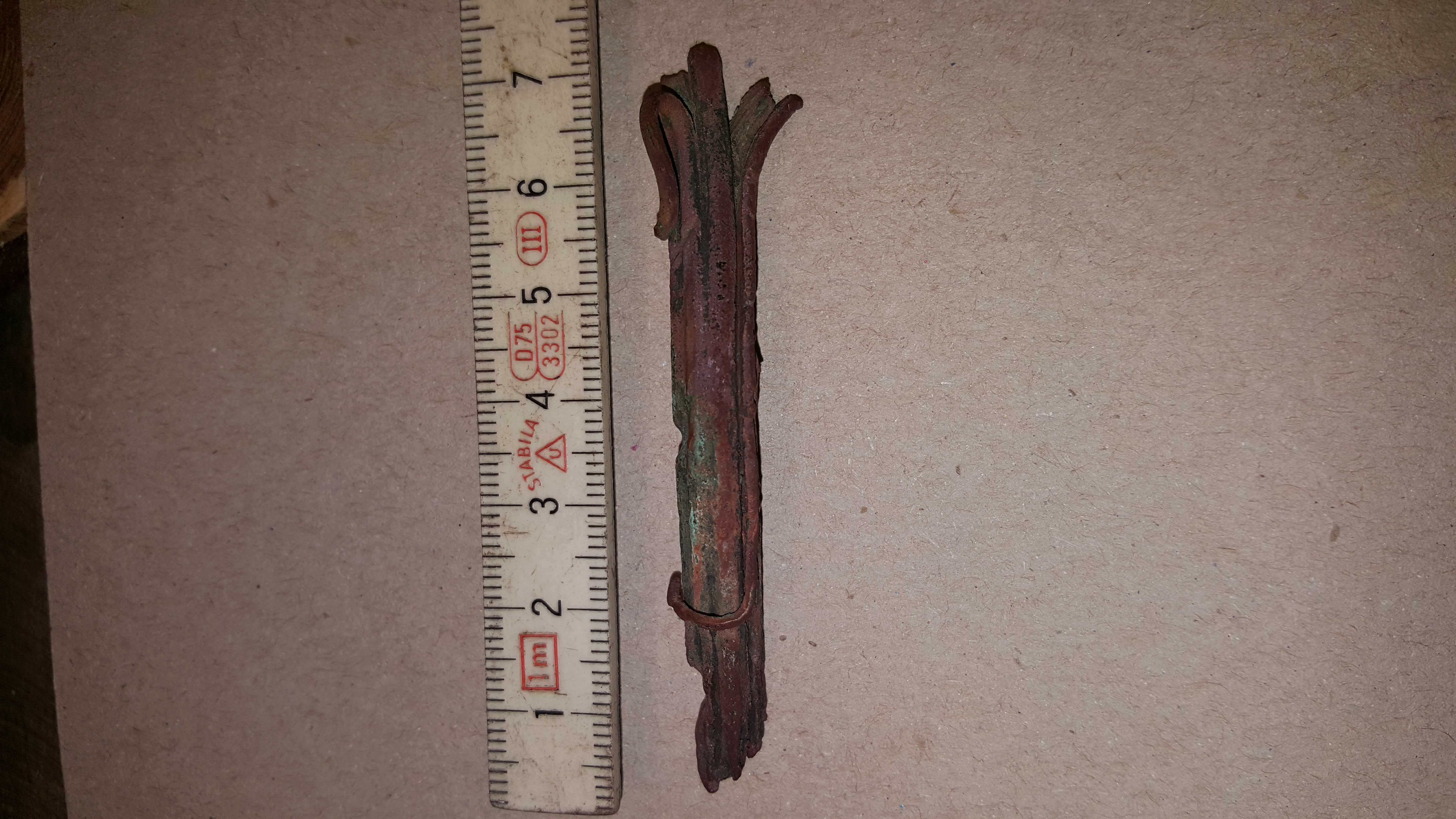 Wir haben diese 4 verzierten Teile/ Bruchstücke vermutlich aus Bronze oder( doch nur Kupfer