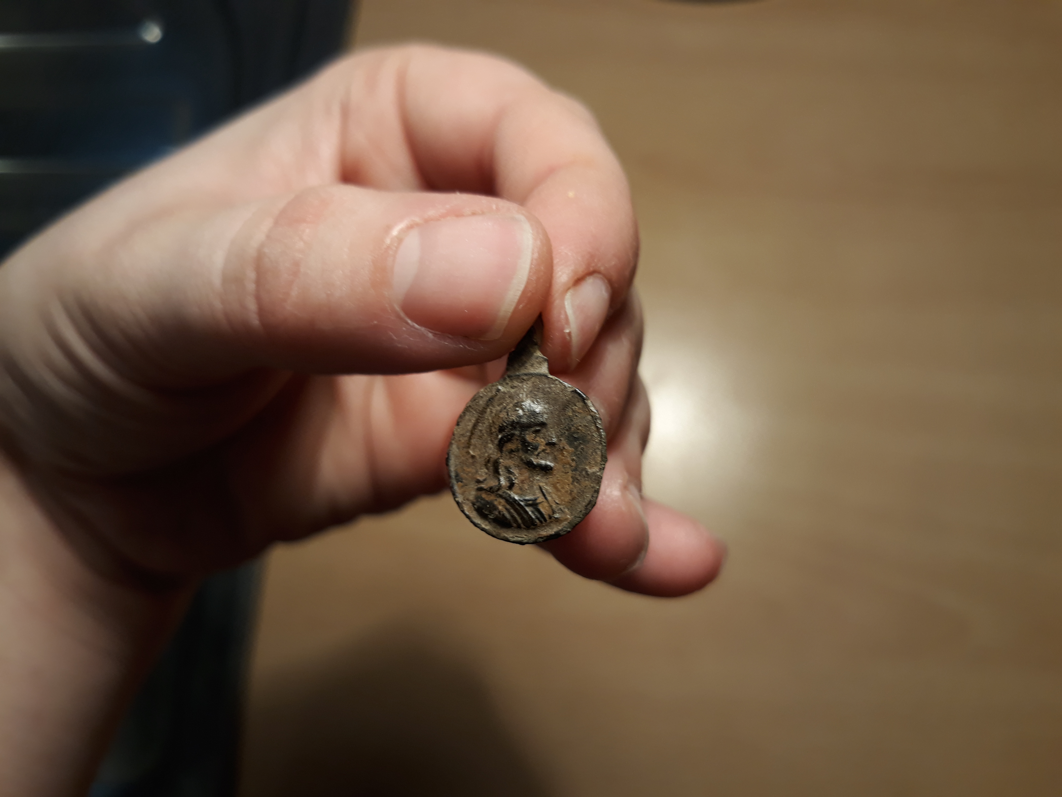 Camino hat geschrieben:Kann jemand etwas zum Anhänger sagen. Material ist Bronze und hat einen Durchmesser von etwa 1 cm. Auf beiden Seiten sind Gesichter von Personen zu sehen, keine Inschrift.
