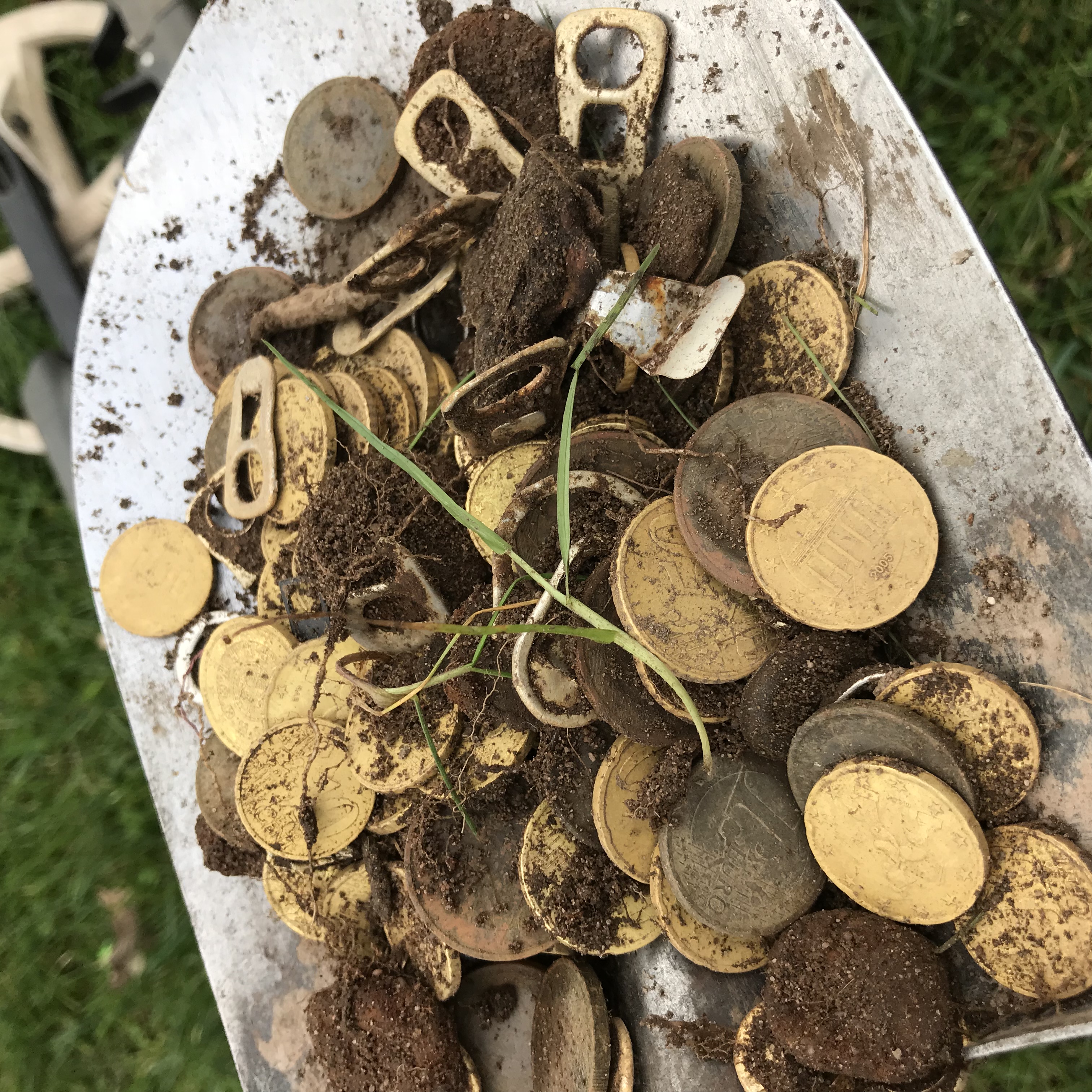 wie können so gut erhaltene Euromünzen auf einer Wiese in solcher Tiefe liegen?