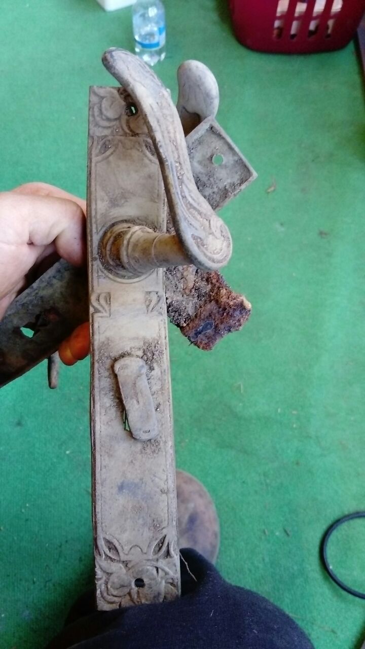 Hallo leute.habe heute diesen Türbeschlag gefunden. die türklinken sind sehr schön verziert sowohl aussen als auch innen.u der beschlag an sich ist auch schön verziert und ist aus Messing(genau wie die klinken)Kann man das alter vielleicht irgendwie zuordnen bzw bestimmen? Danke murzi85