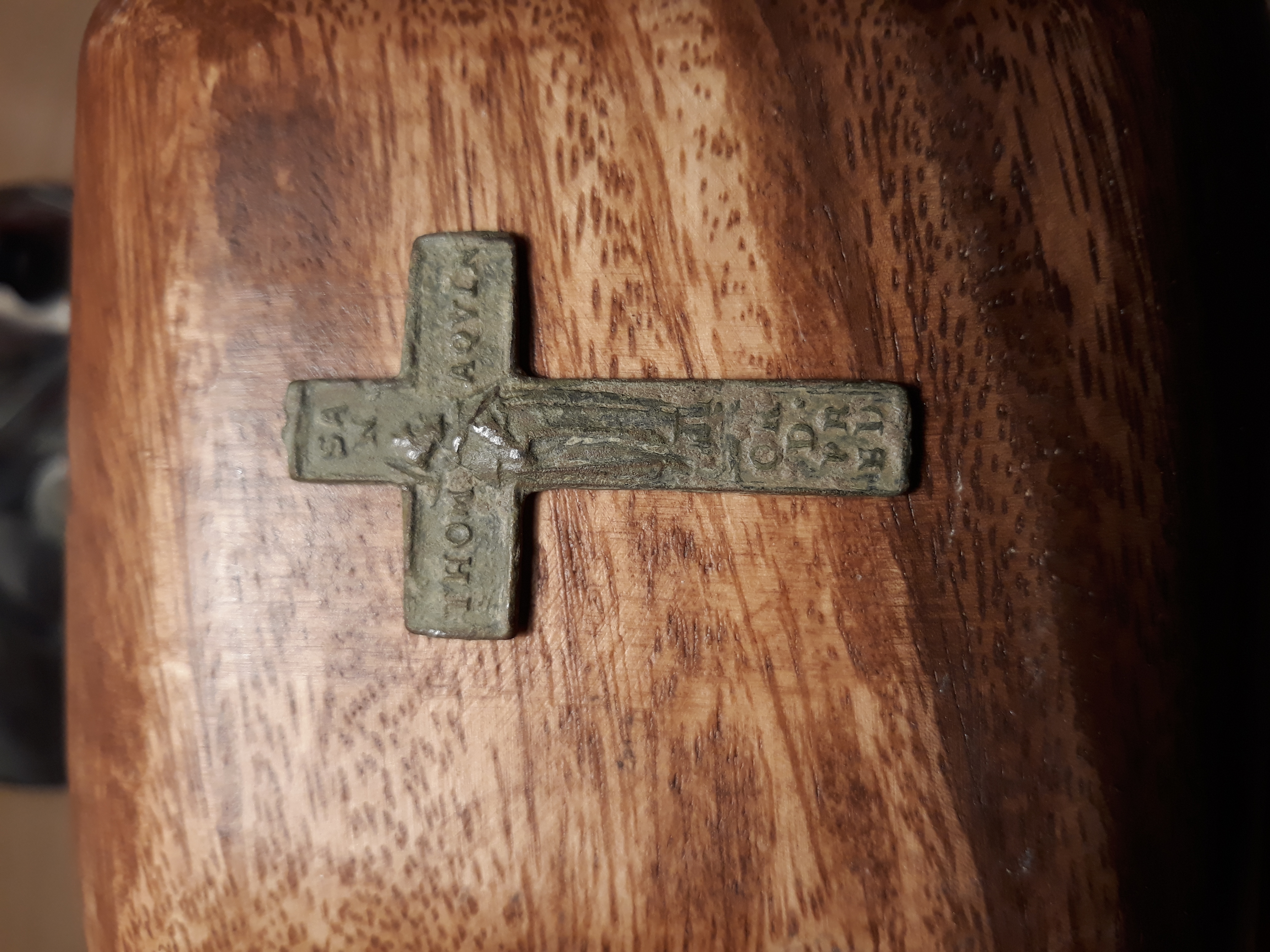 Heute wieder das Feld unsicher gemacht. Jemand eine Ahnung wie alt das Kreuz sein könnte? Drauf zu sehen ist Thomas von Aquin.