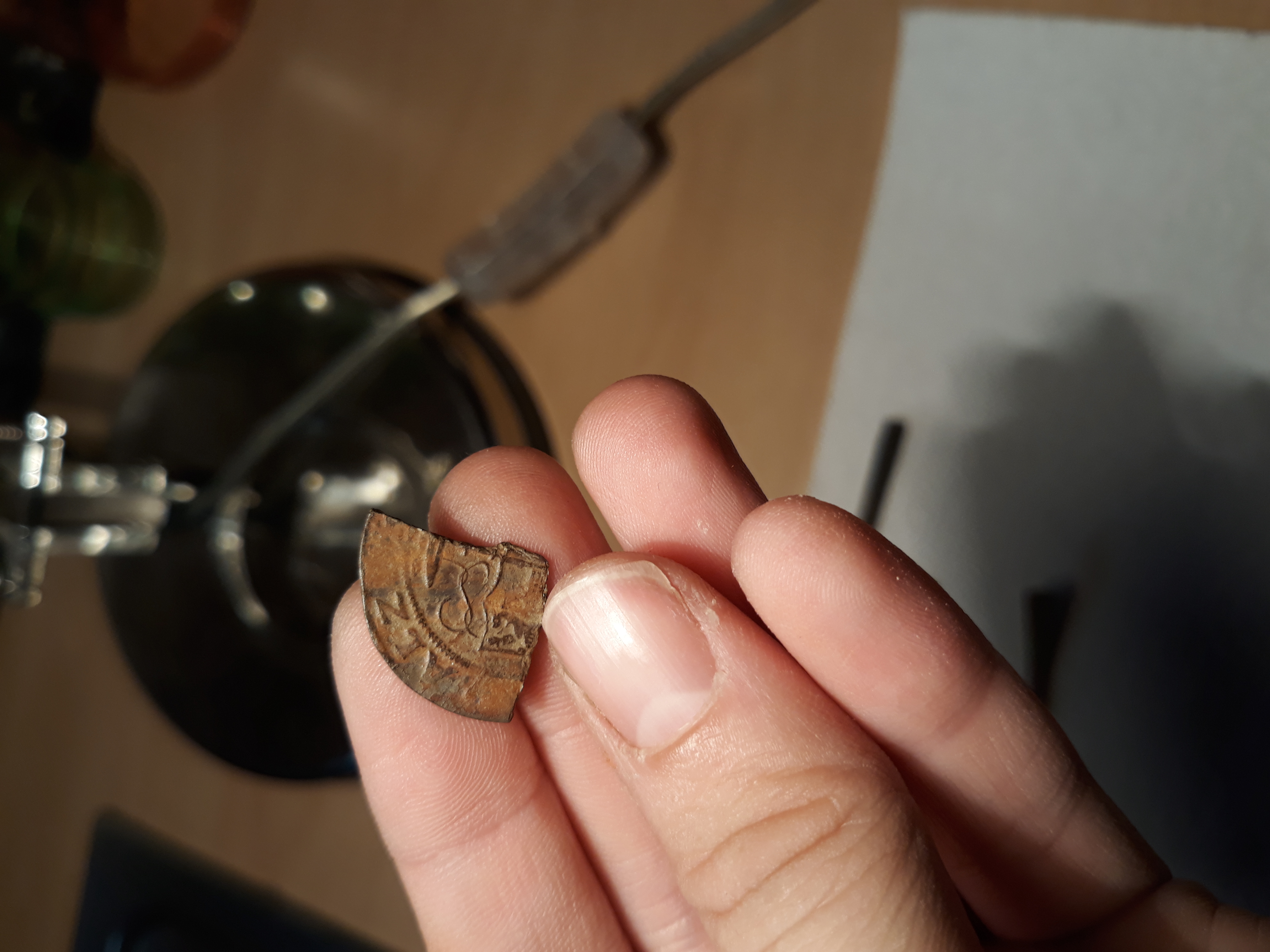 Heute diese geviertelte Münze gefunden. Sie müsste Salzburg 1630 - 1680 rum sein. Das komische ist, ich finde in dem Zeitraum nur Silber- und Goldmünzen rum mit diesem Motiv. Es ist denke kein Silber. Ist leicht gelblich. Ich finde sie allerdings für Kupfer zu detailliert erhalten. Auf den Bildern ist sie so wie sie aus dem Boden kam. Größe so etwa 12 mm. Kann jemand helfen?