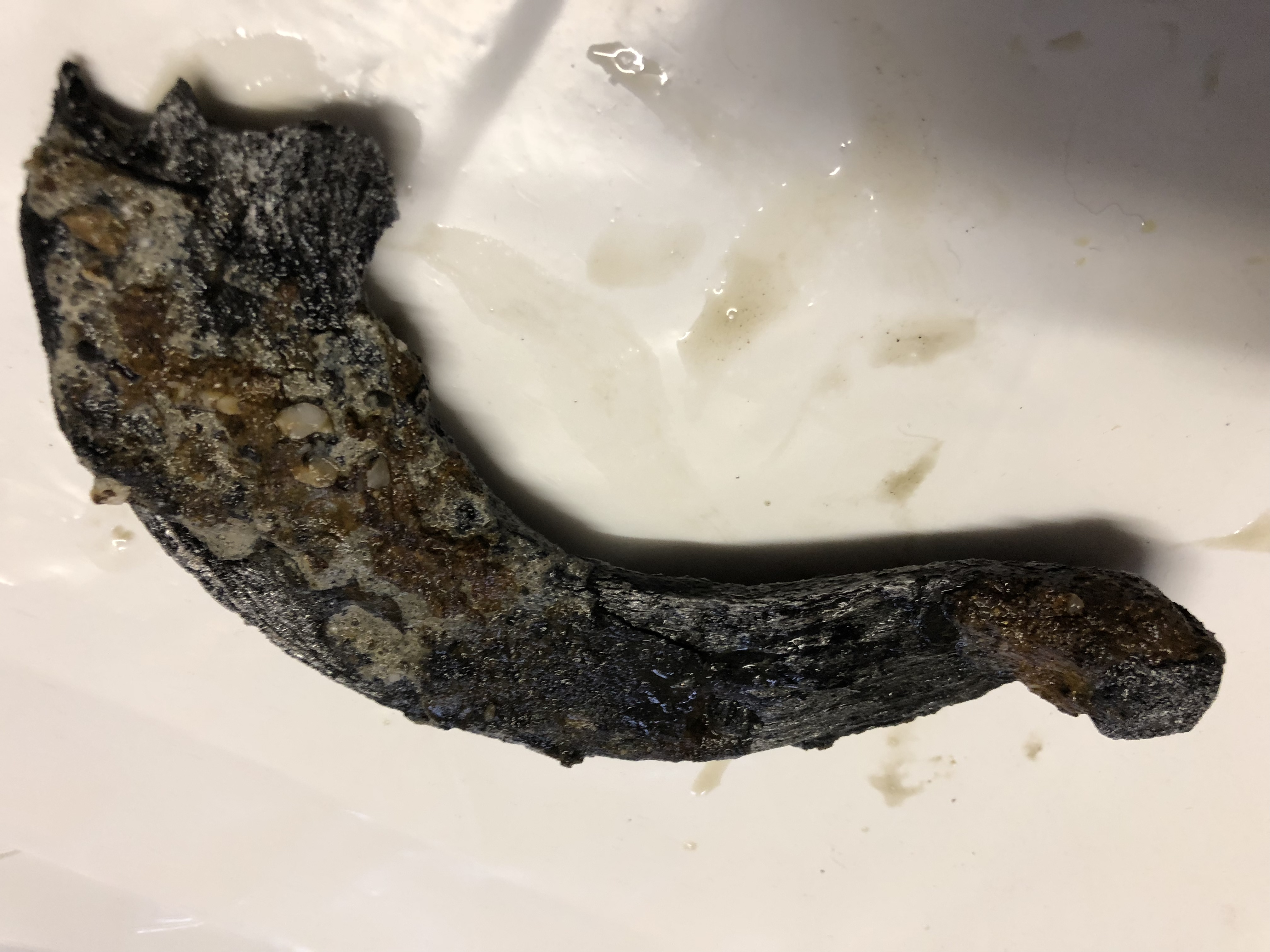 Liegt derzeit in Säure. Die Kruste löst sich jetzt langsam nach 3-4 Tagen. Anbei 2-3 Bilder von eben.