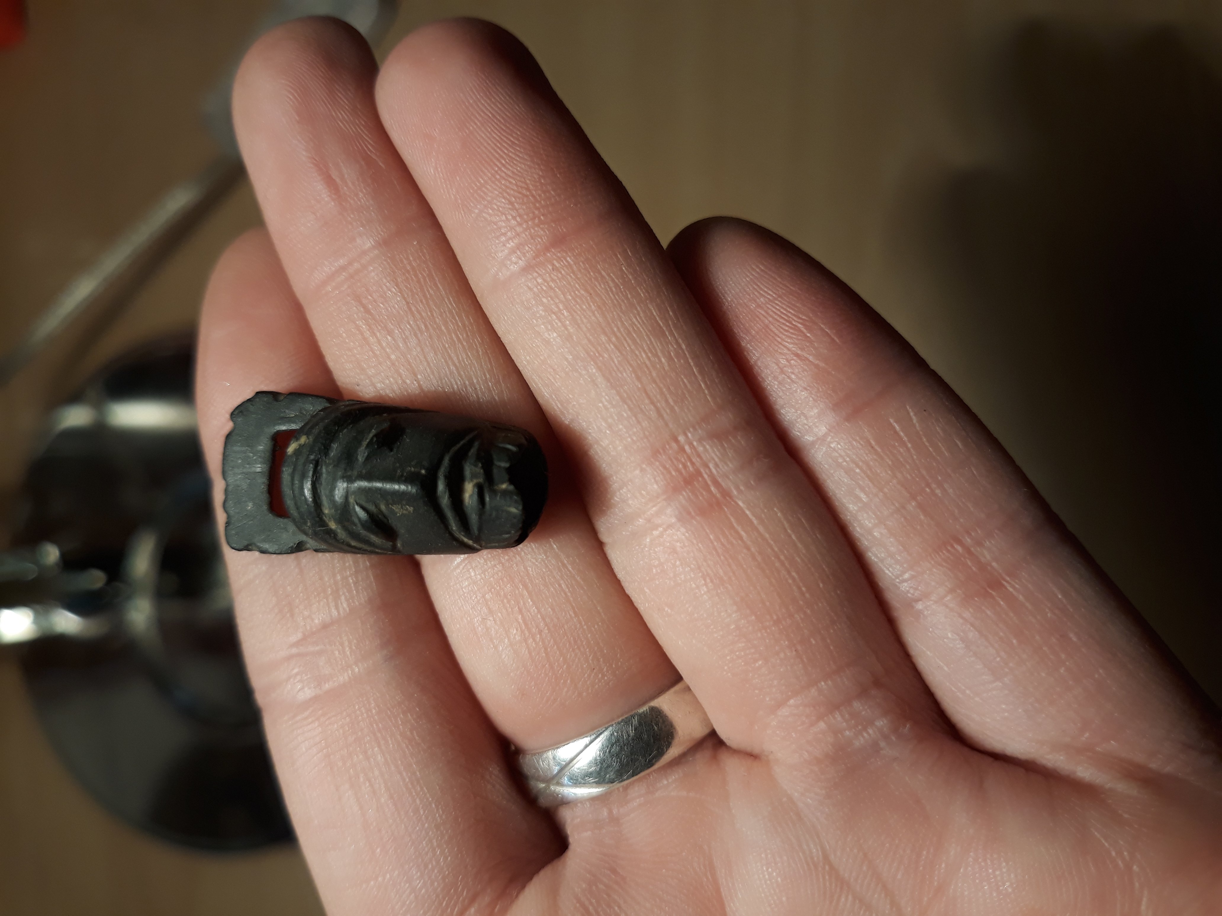 Naja, dafür heute ein kleine interessante Bronzefigur/Kopf gefunden. Sie ist etwa 3 cm lang und 1,5 cm breit, innen hohl und scheint einen Griff oder Aufhängung zu haben. Hat jemand eine Ahnung was das gewesen sein könnte und wie alt das sein könnte?