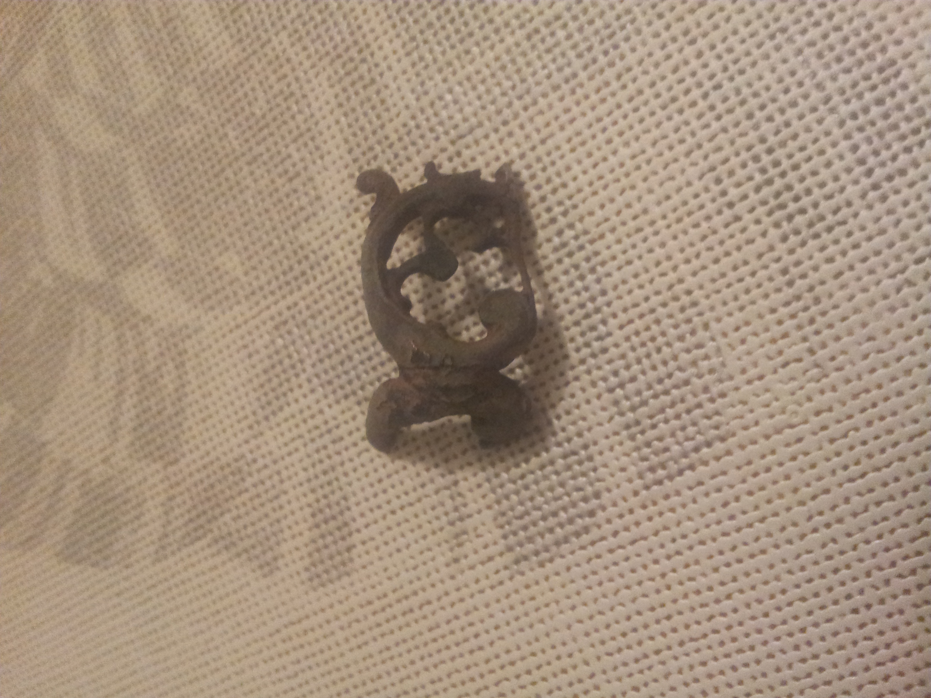 zu guter Letzt ein Zierteil (Teil ener Fibel). Zwei Flügel die im rechten Winkel zueinander stehen mit Durchbruchornamenten.