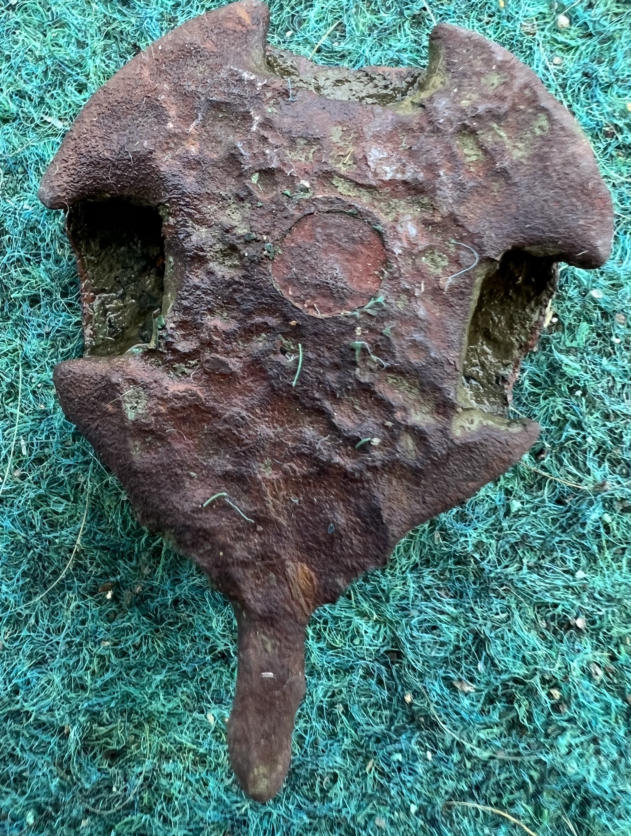 ich habe bei meiner Suche folgendes gefunden, vielleicht kann mir jemand von euch weiterhelfen bei der Fundbestimmung, es ist etwa so groß wie eine 50Cent Münze. Meine Tendenz ist zu einem Anstecker oder vielleicht eine Siegelkapsel.