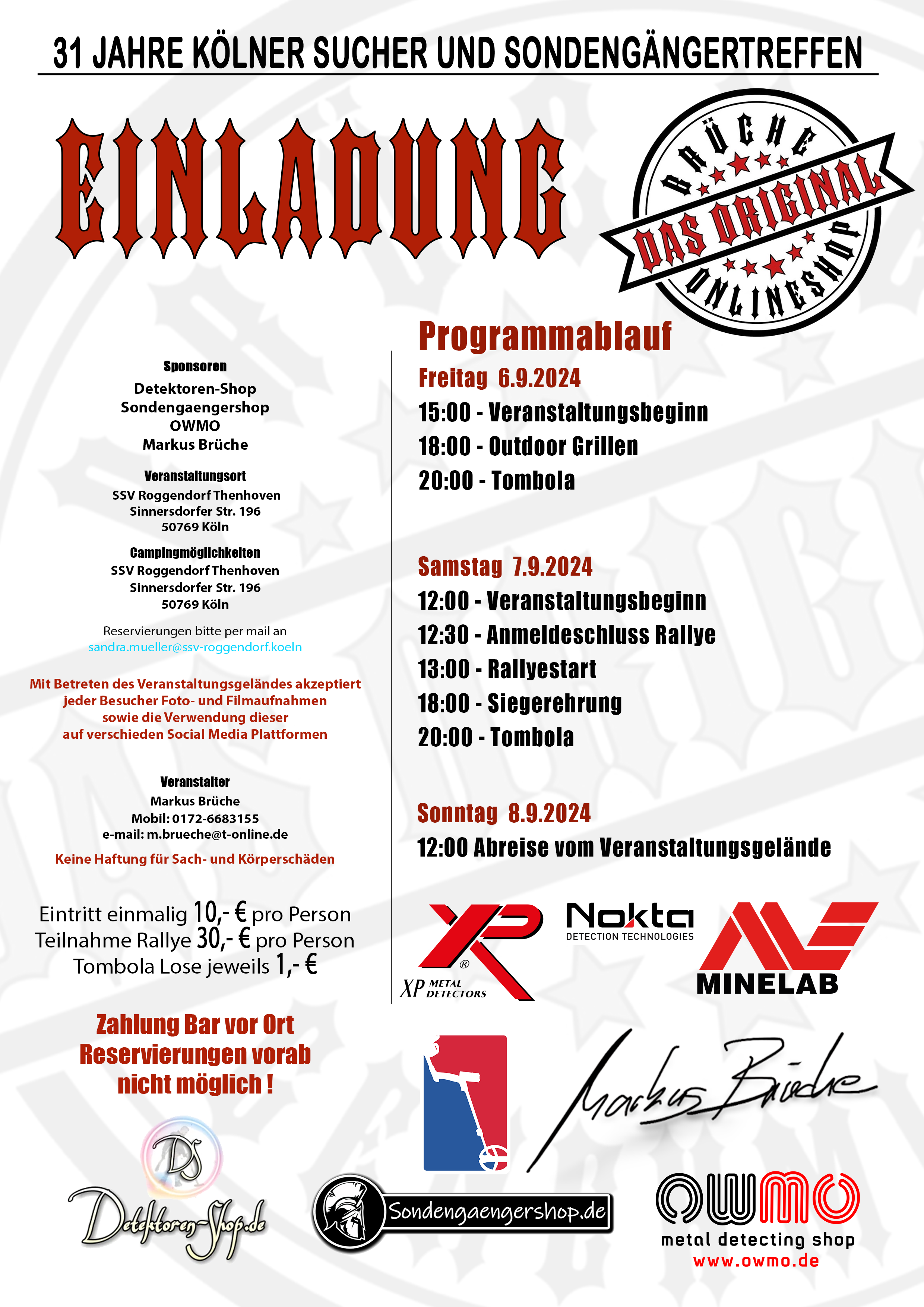 Alles andere zum Sondengänger Treffen Köln vom 06.09. - 08.09.24 entnehmt ihr bitte aus diesen vier Links.