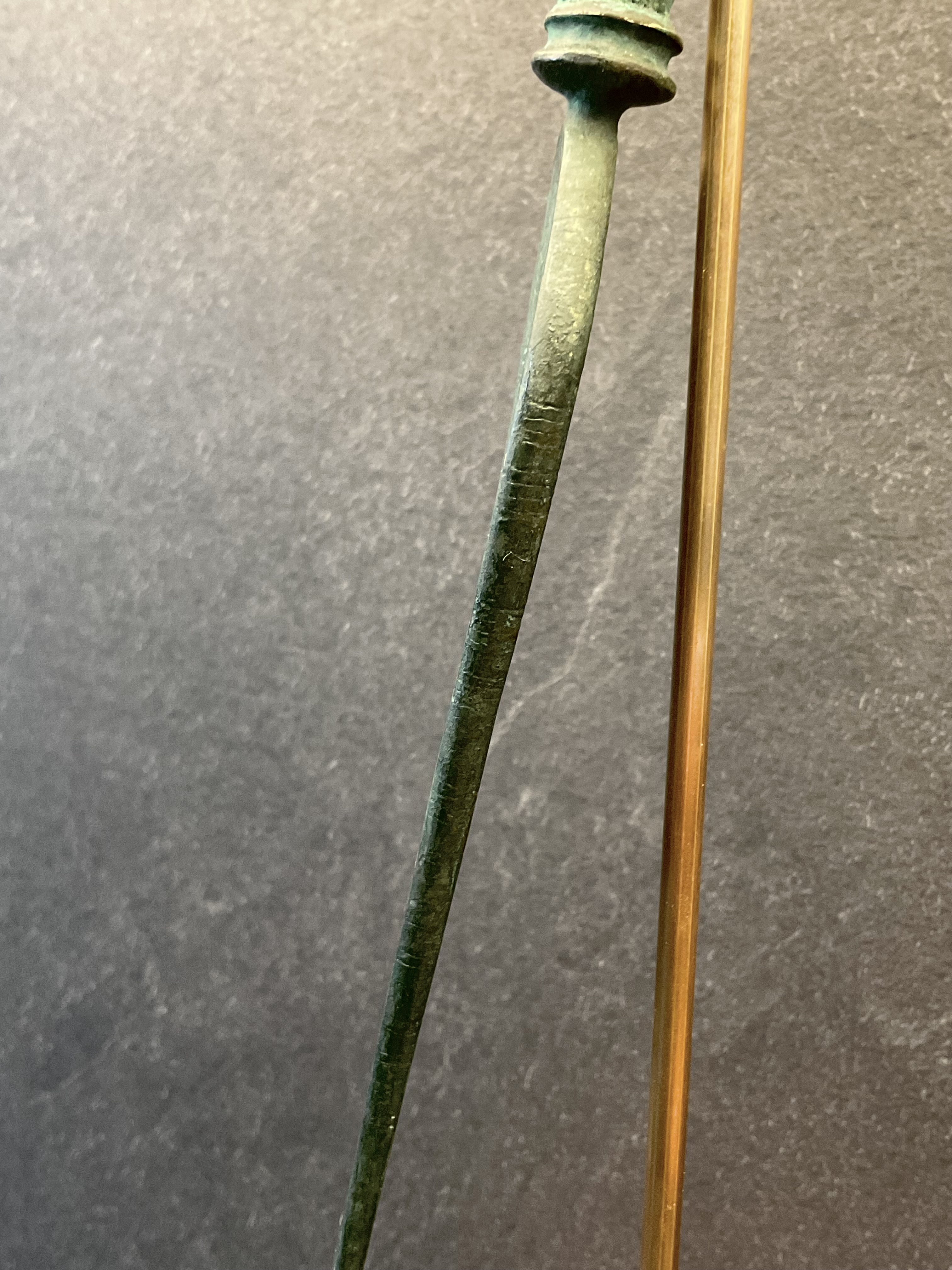 - Die Patinierung wurde sorgfältig aufgetragen, um dem Schwert eine antike Optik zu verleihen.