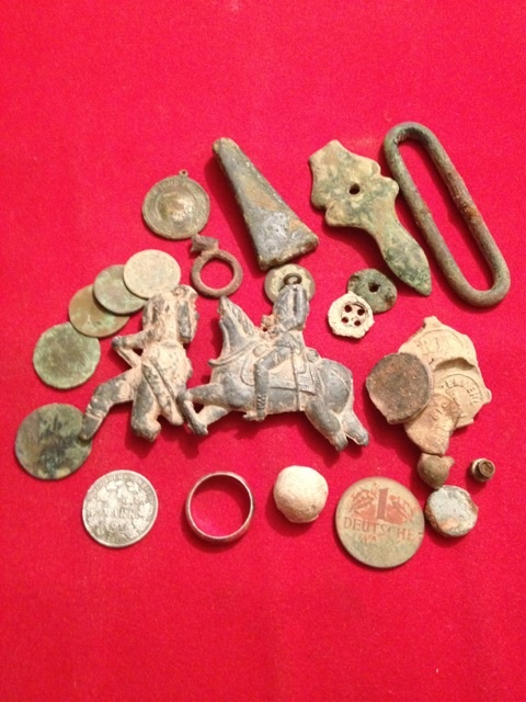 Eine Silber Münze,ein kleiner silber Ring,einen kopflosen Reiter mit seiner Begleitung und nen Pfennig aus dem Jahr 1796 und,und,und