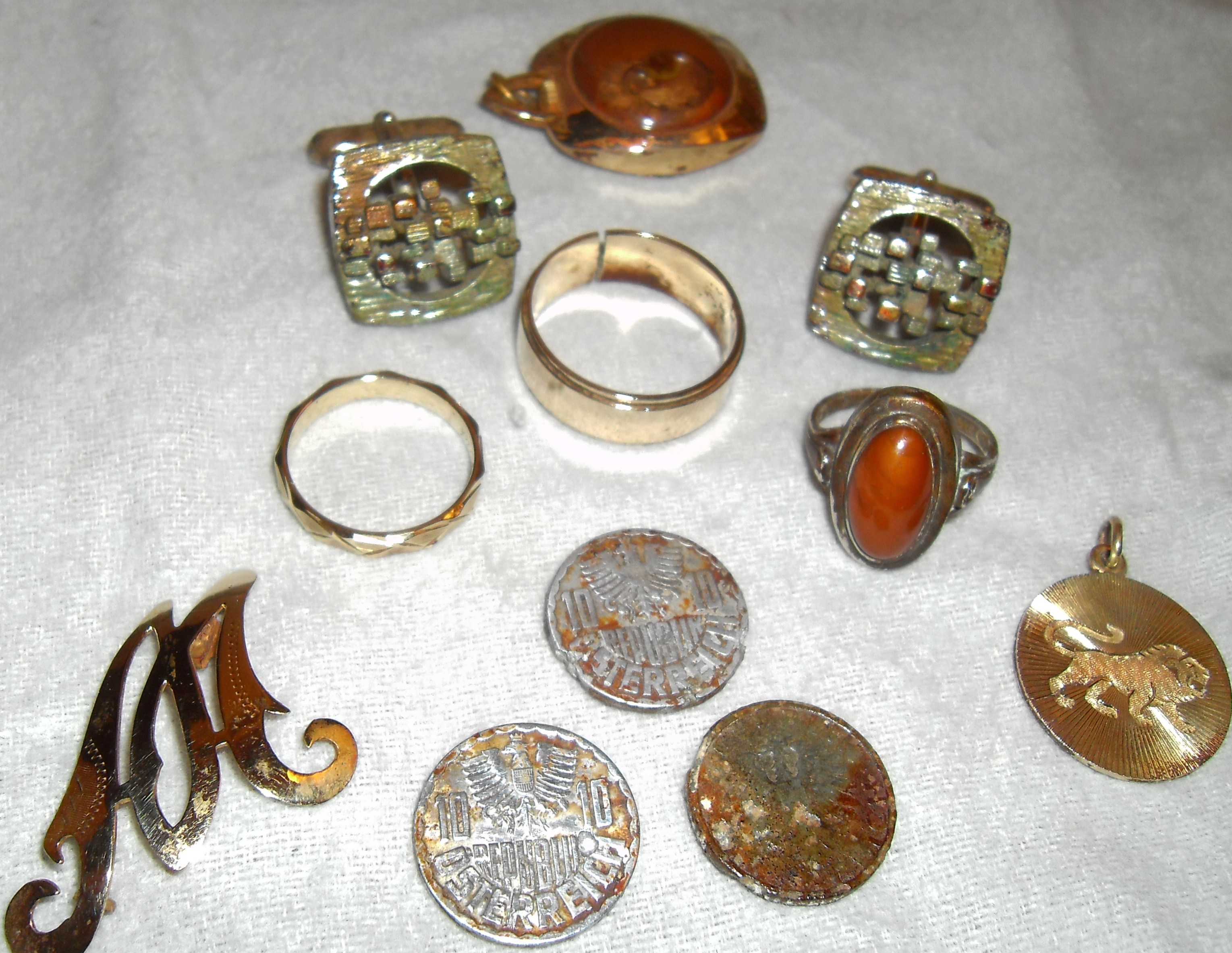 137 Silbermuenze ( 3 Pfenning, 1 Kreuzer, 3 Kreuzer, 6 Kreuzer)1345-1730 die meisten leopold 1, cca 100 Kupfer Muenzen ab 1763 bis 1800 alle Kreuzer Groschen, viele Pferdehufe, Ketten, Bierdosen, das uebliche muell.