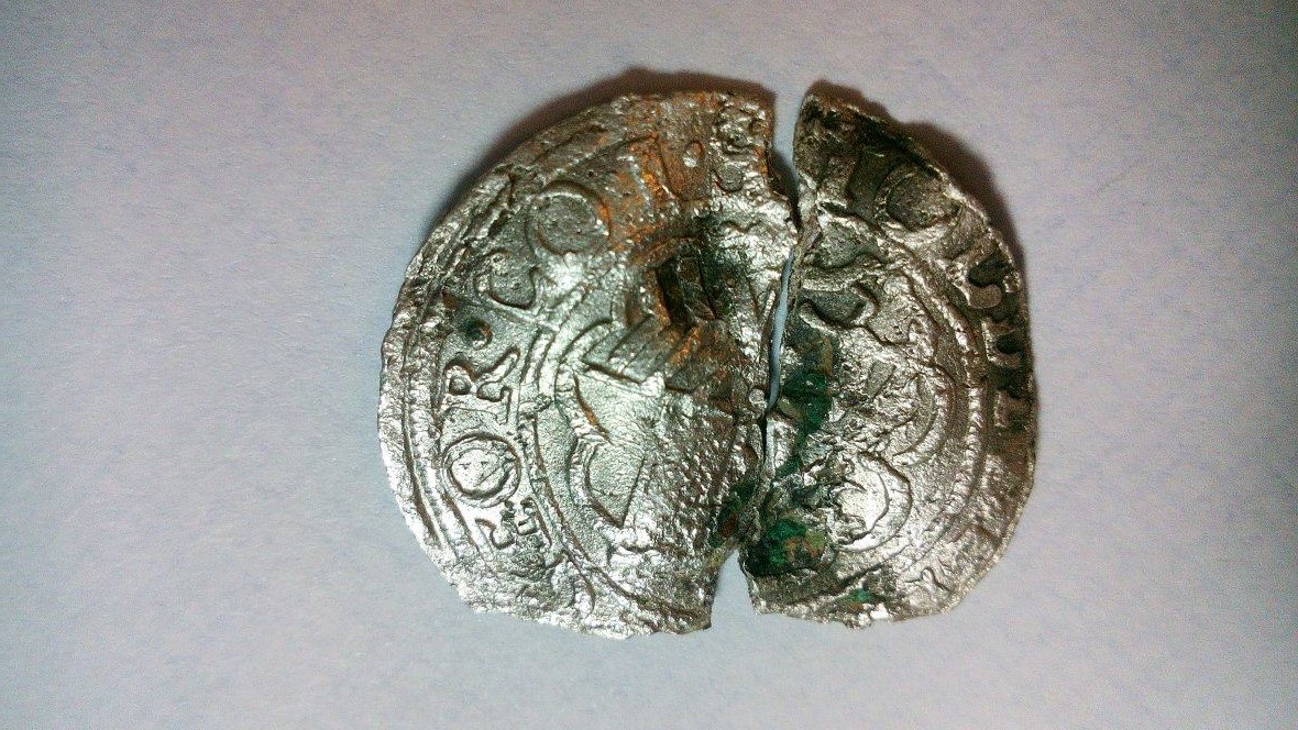 1 Pfennig 1902 und eine zerbrochene Silbermünze, die ich nicht so richtig bestimmen kann.