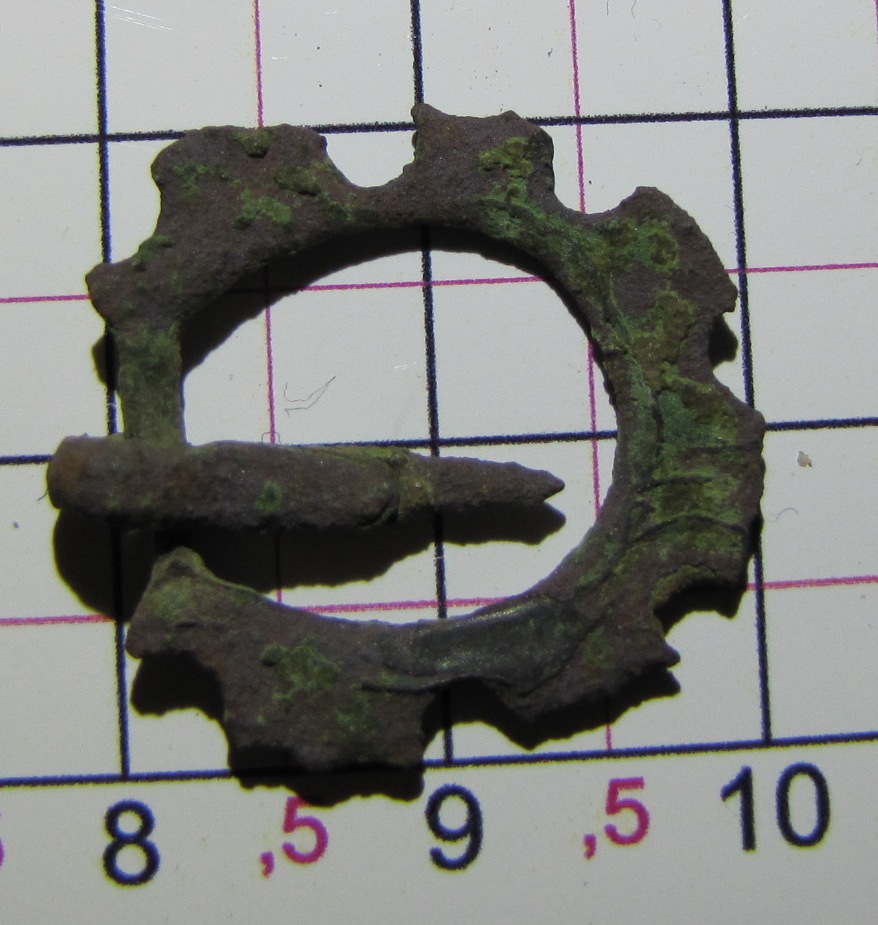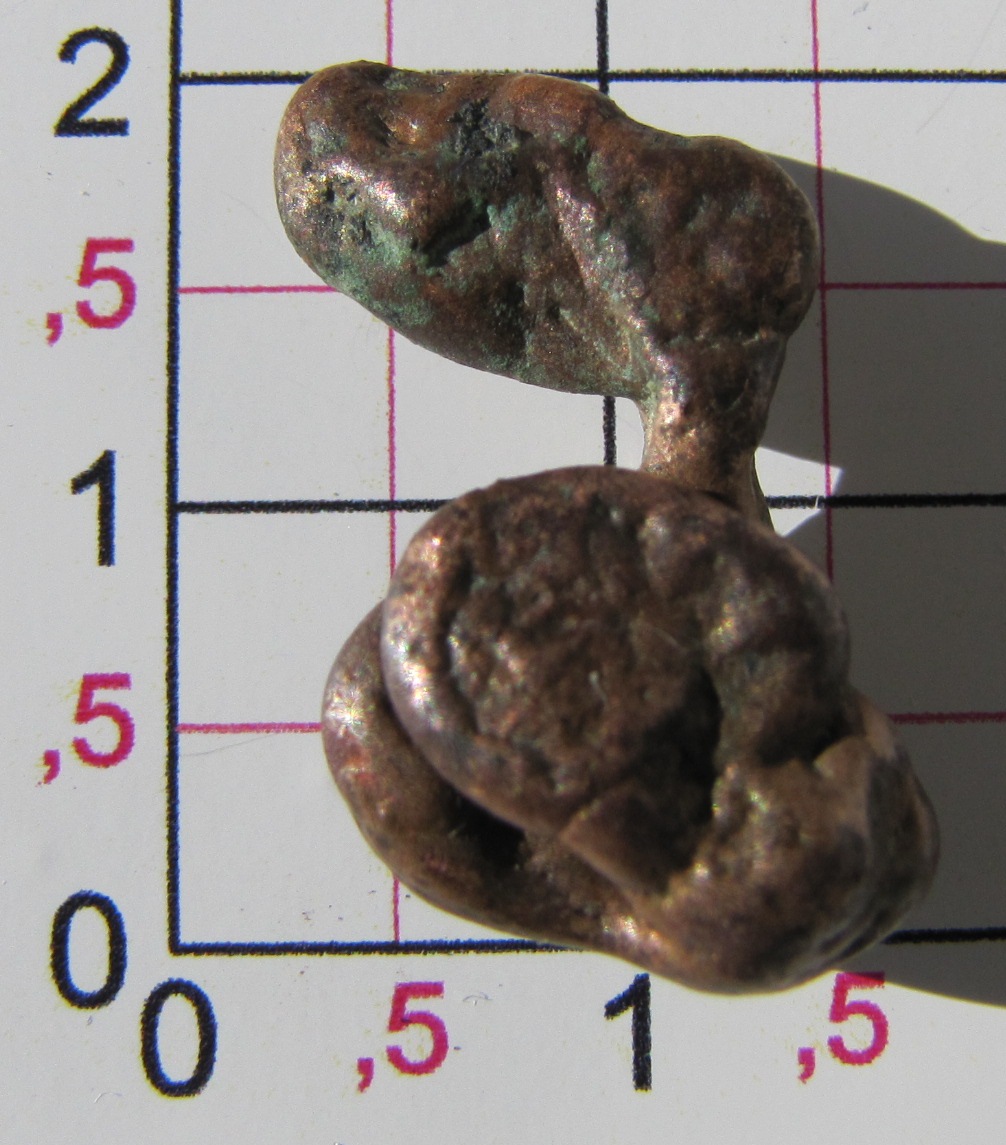 Foto 1-3: 5,9g ; Dichte ca. 8,3 g/cm³ ; Material Bronze o. Messing??