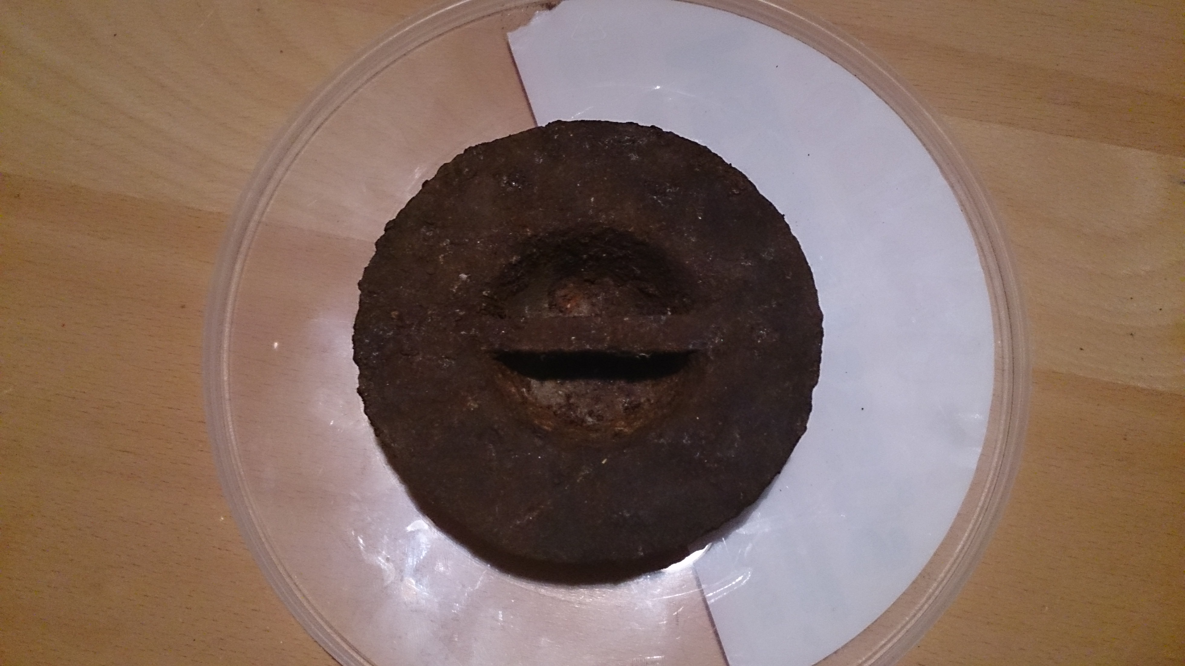 Könnte das runde Teil auch eine alte "Radkappe" sein?