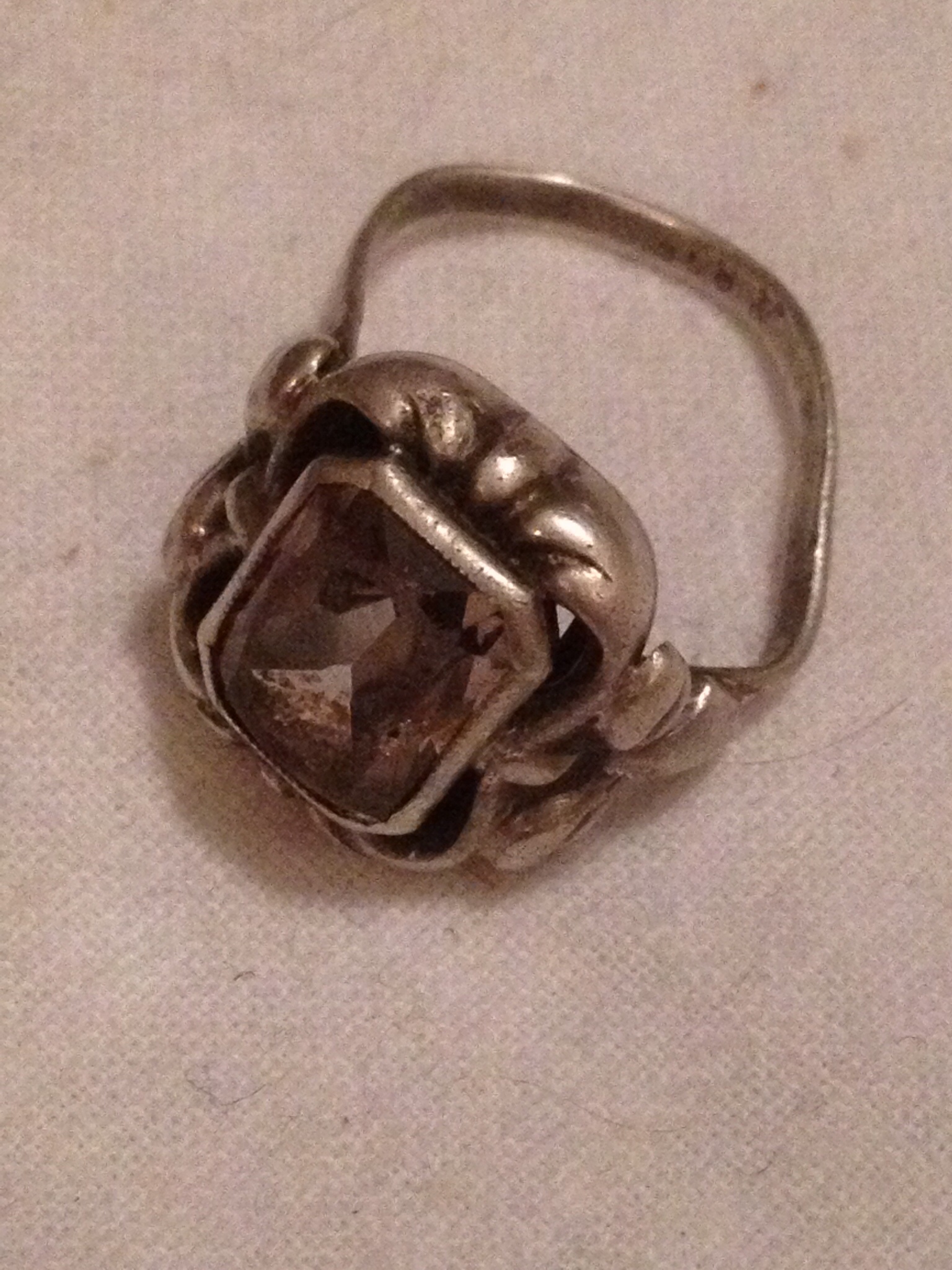 835 iger Weissgold mit einem Rauchquarz