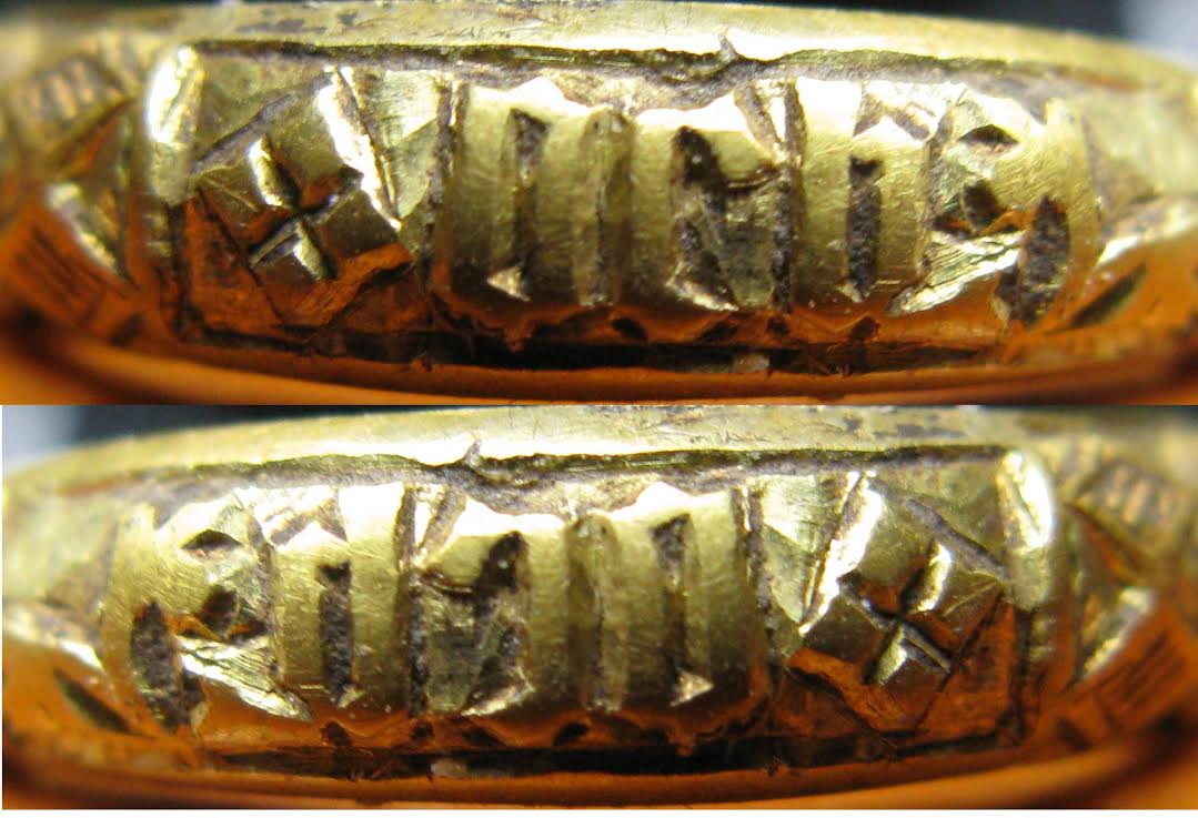 Mach am besten mal einen Abdruck oder einen Abrieb (dünnes Papier und weicher Bleistift) von der umlaufenden Gravur!