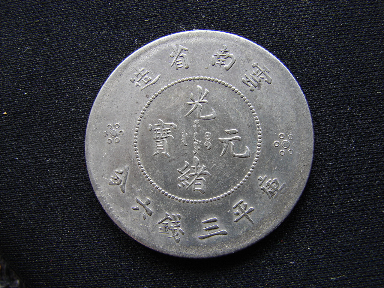 Deine Münze sind eindeutig 50 China Cent, Provinz Yunnan 1911-1949. Aus welchem Jahr genau, wird dir niemand sagen können.Weil deine Münze nicht aus Silber ist, gehe ich von 1927-1949 aus (Bürgerkrieg) In dieser Zeit wurde alles nachgemacht, gefälscht...usw , was bis heute ja Bestand hat. :mrgreen: