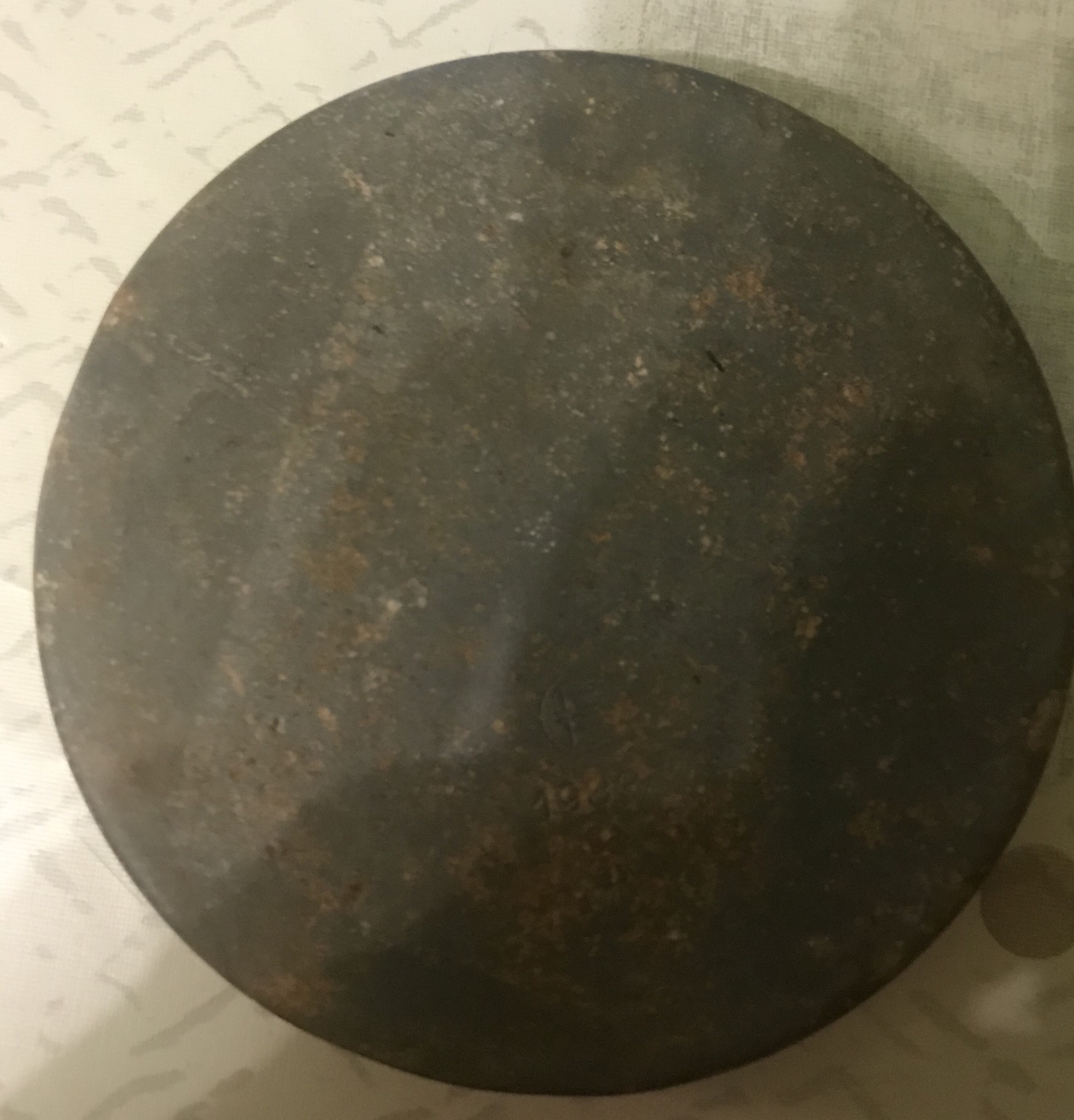 2 , könnte Zink sein , Durchmesser 11 cm Tiefe 2 cm Stempel 1933 / Adler / Firmenstempel denke ich mal .