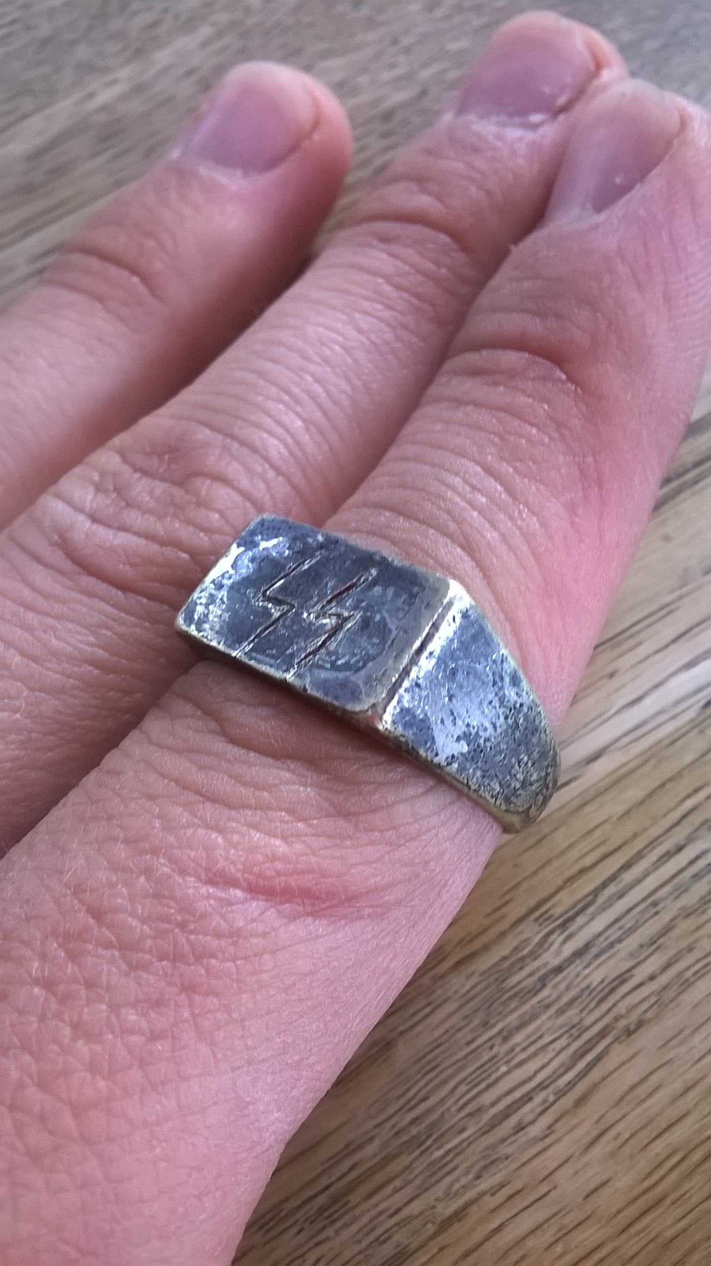 Ich weiß, dass man NS- Symbole abdecken sollte, aber dieses Symbol macht nun mal den Ring aus.