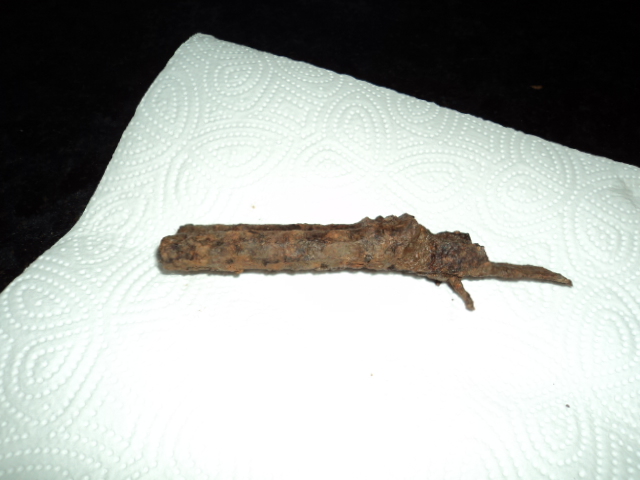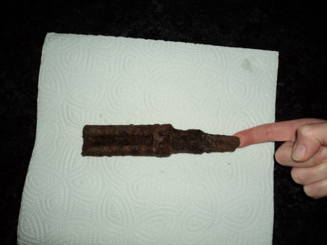 Nun bin ich mir fast sicher das das Fundstück Reste einer doppelläufigen Pistole sind. Ich habe die Fundstelle im umkreis abgesucht, aber außer Hülsen neuerer Bauart (vermtl. Jäger) nichts weiter gefunden Der Fund wurde nur grob gereinigt.