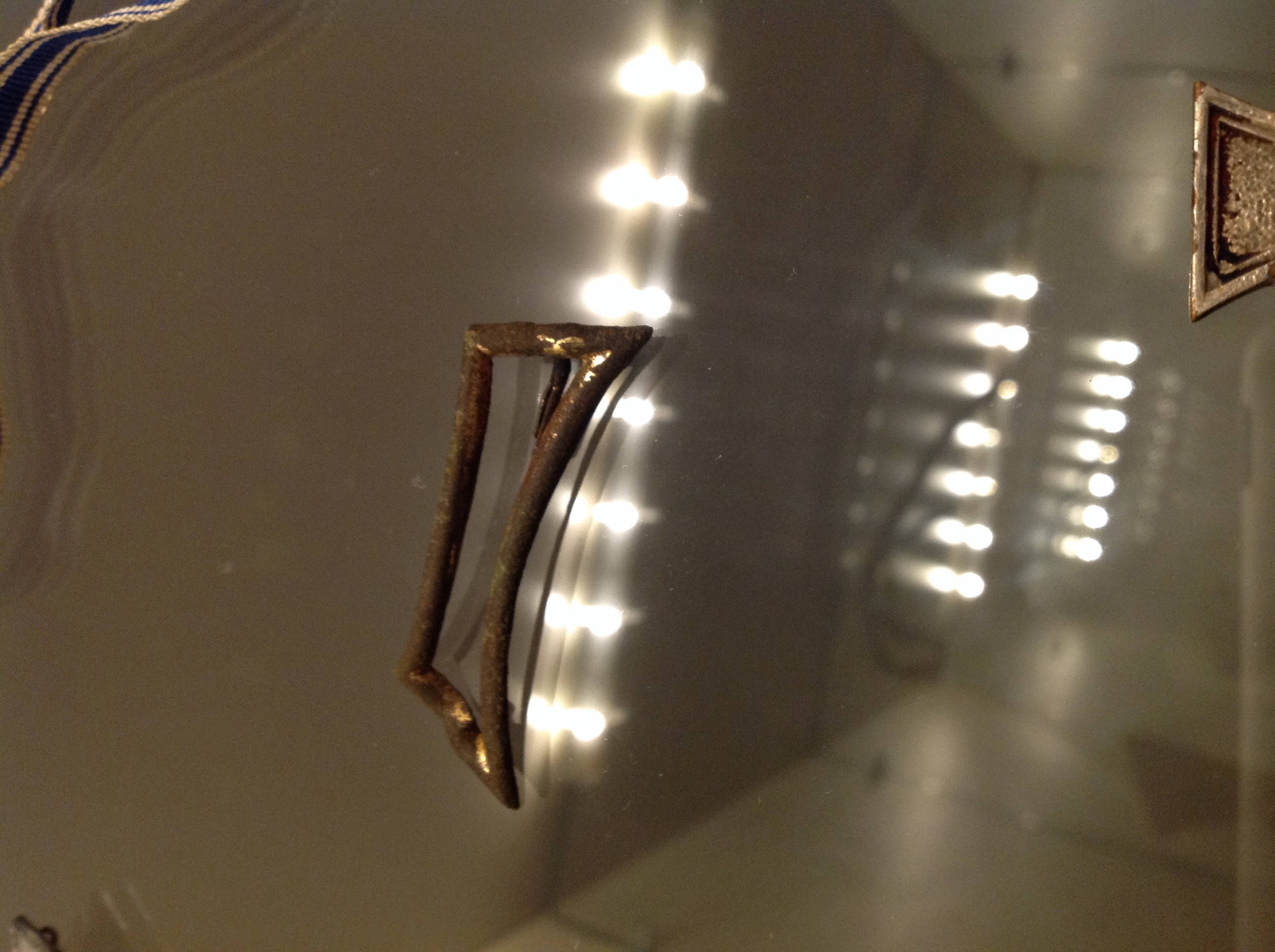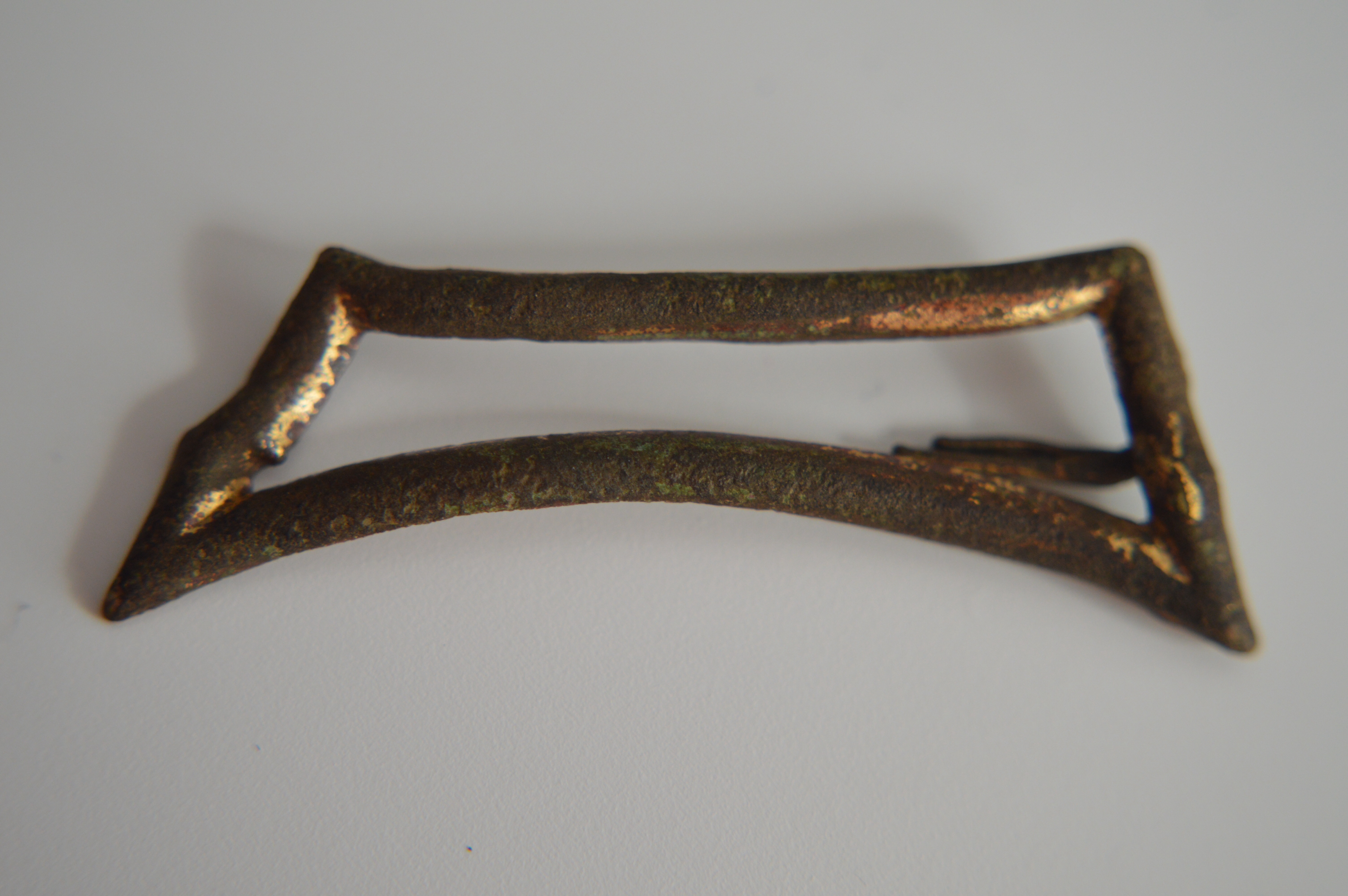 Sieht für mich aus wie ne Gürtelschnalle aus Messing. Ist wohl nur etwas zerdrückt. Mfg