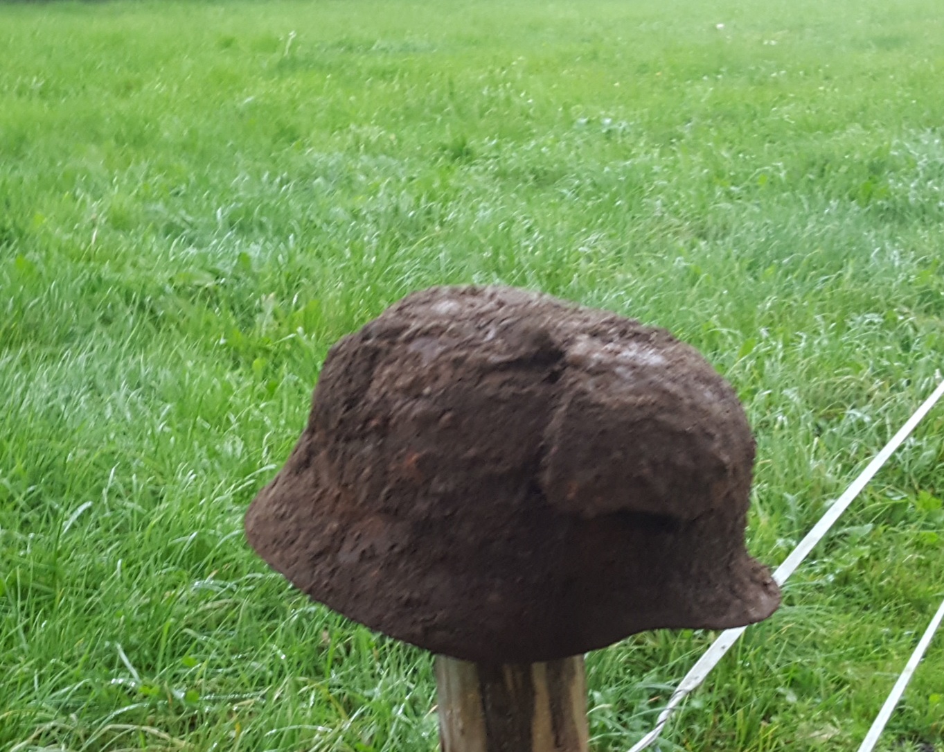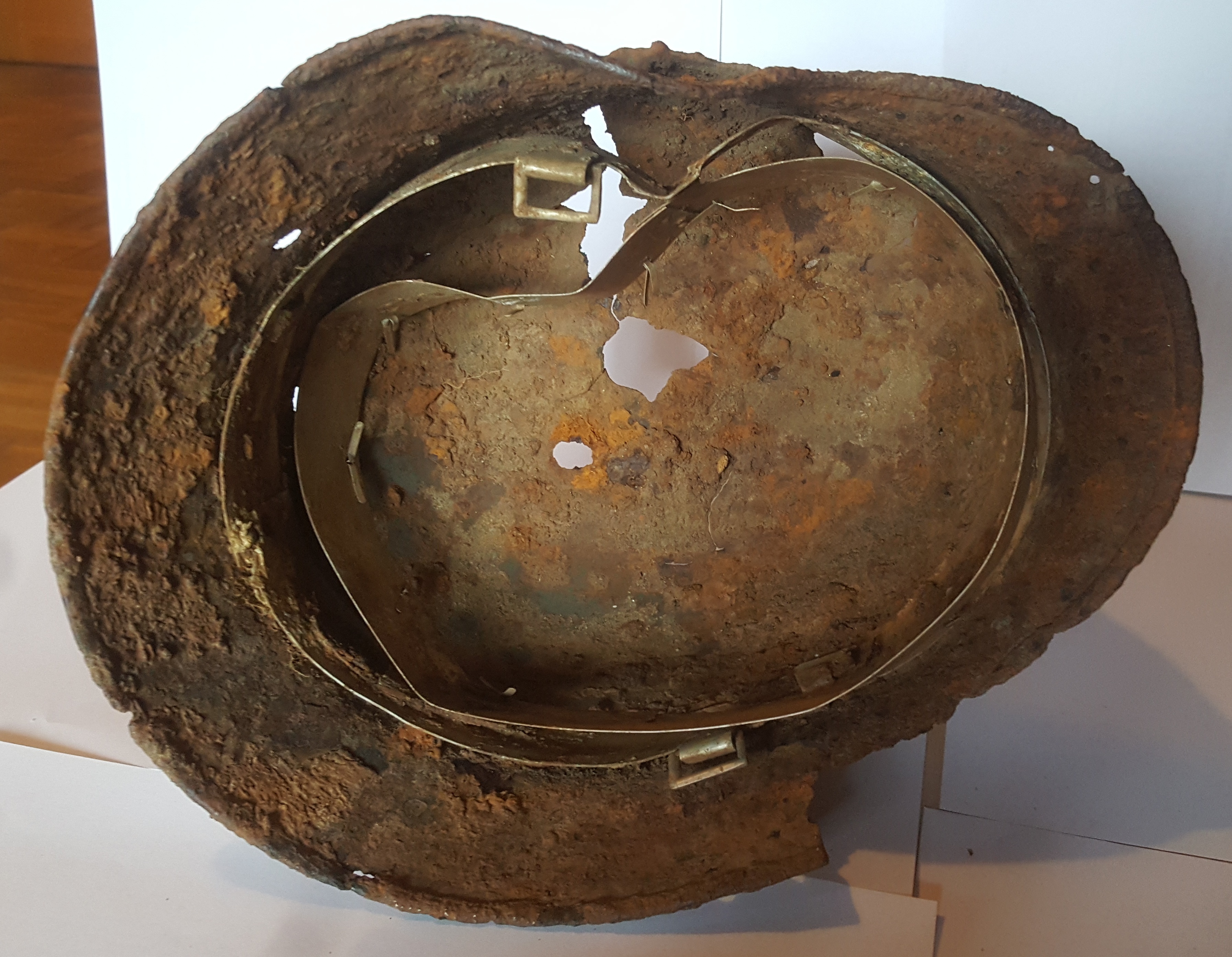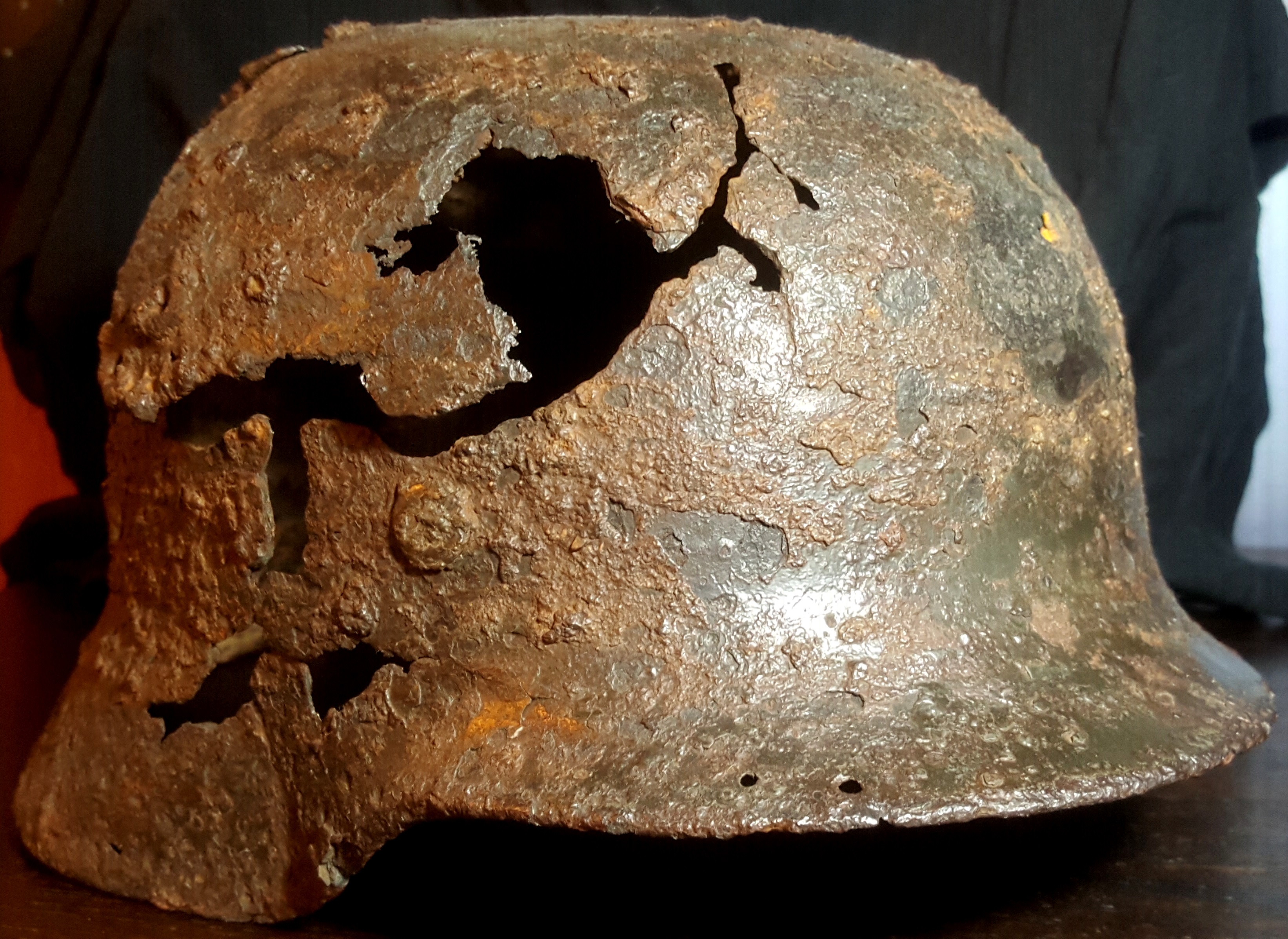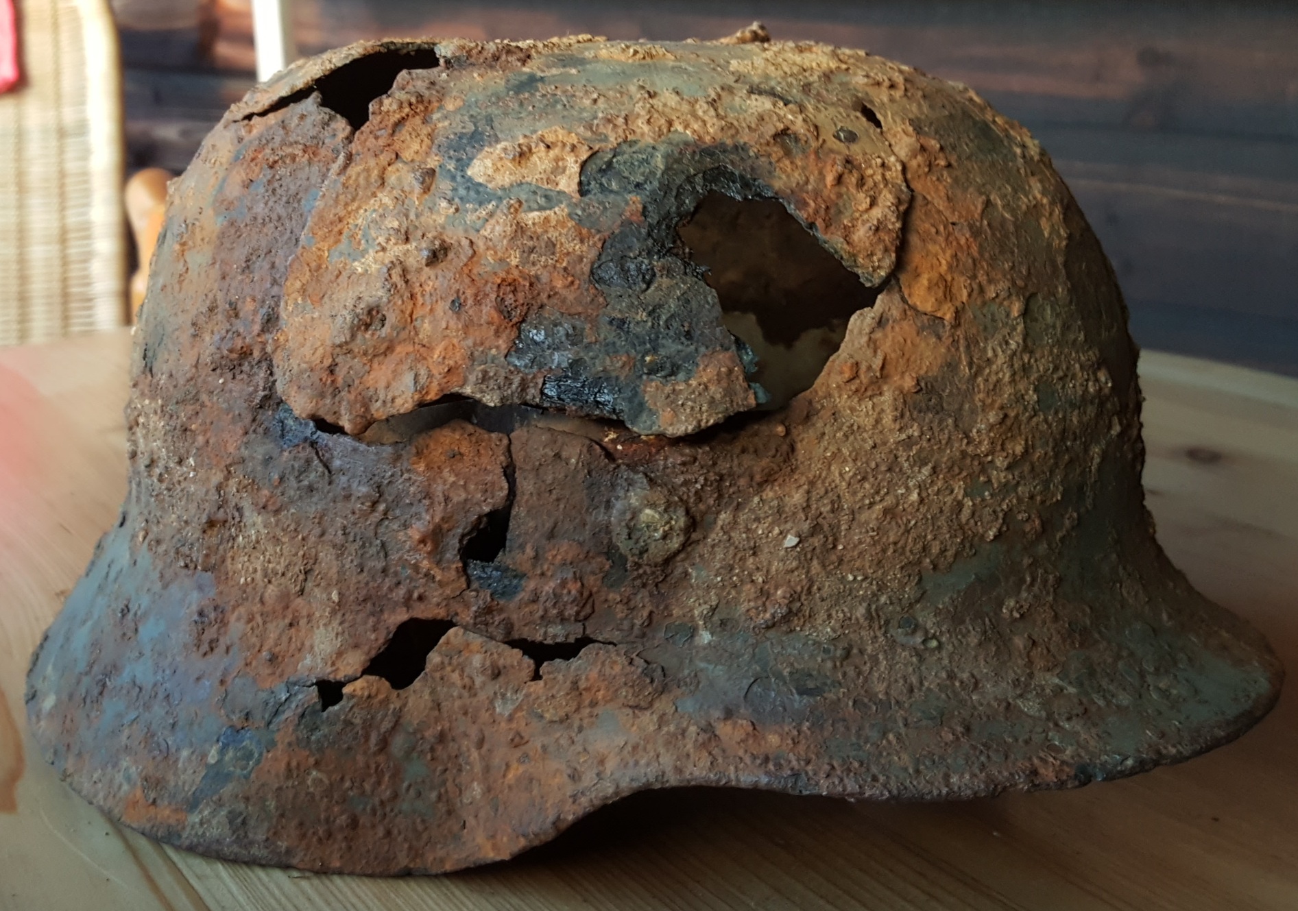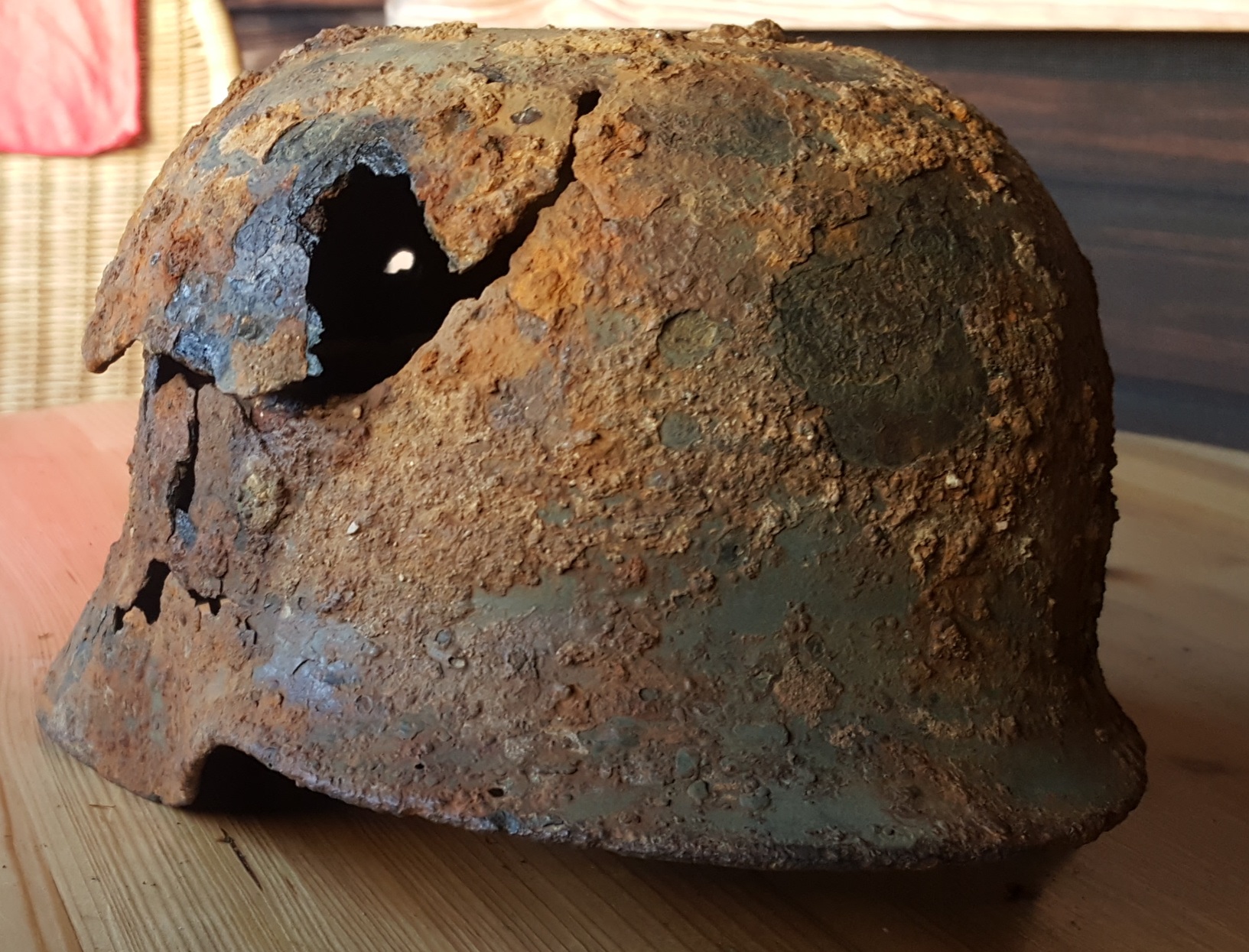 Da von dem Stahlhelm ständig etwas abbröselte, konnte ich ihn nicht im Original zustand belassen.