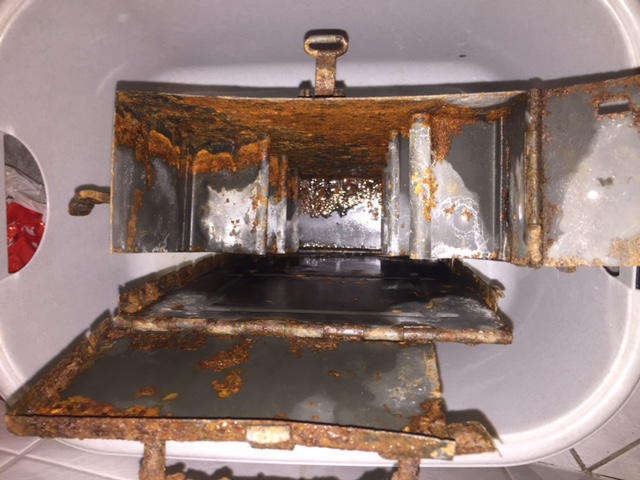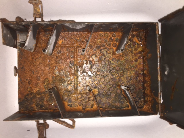 Ich finde die Form des Innenlebens auch sehr merkwürdig.Jedoch würde Ich sagen es ist für ein Mg die Munitionskiste,denn man sieht noch von den Patronen die Roststellen und oben ist die Klappe wo der Gurt rausgeführt wurde.