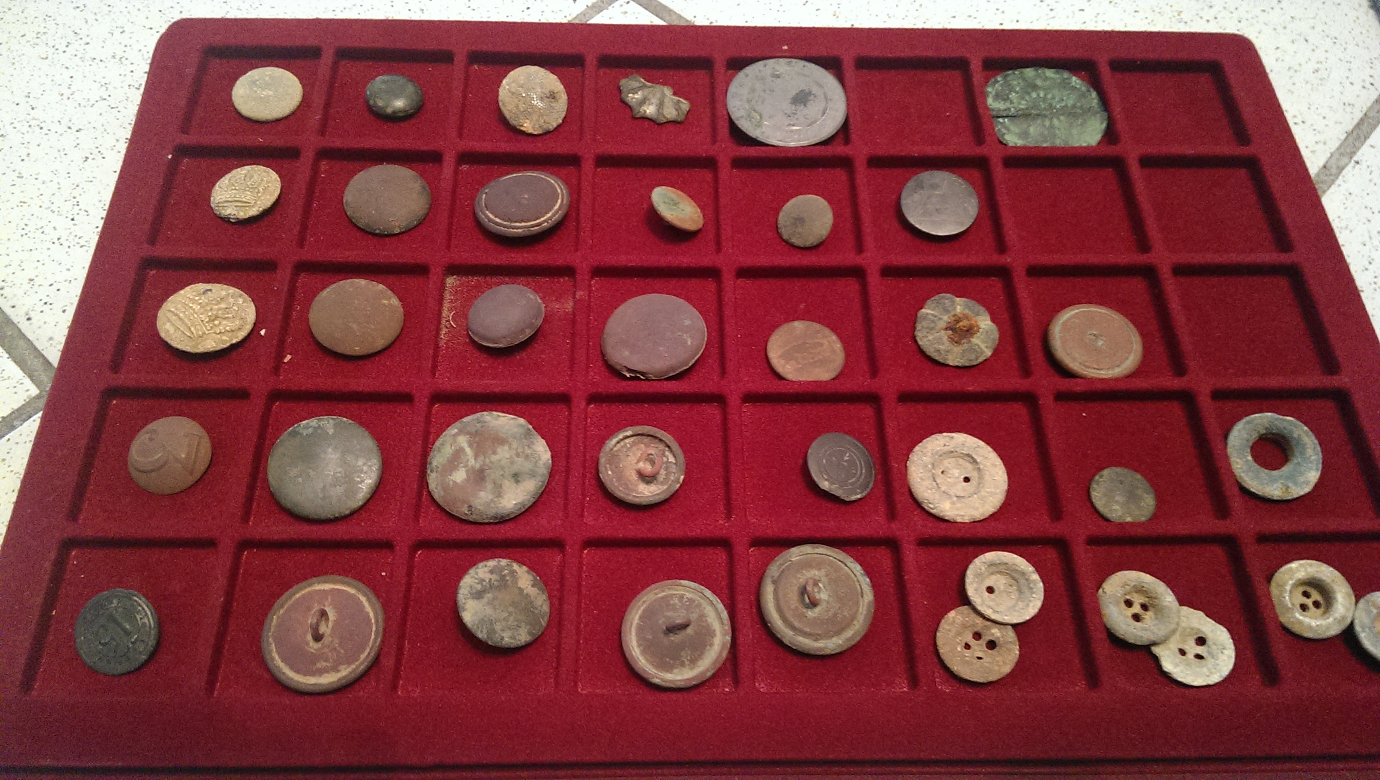 Der kleinste Knopf hat einen Durchmesser von 11mm (rechts oben) und der größte (rechts unten) von 35mm. Sind zwar nicht viel und alle schön aber es gibt bestimmt welche die haben mehr und schönere.