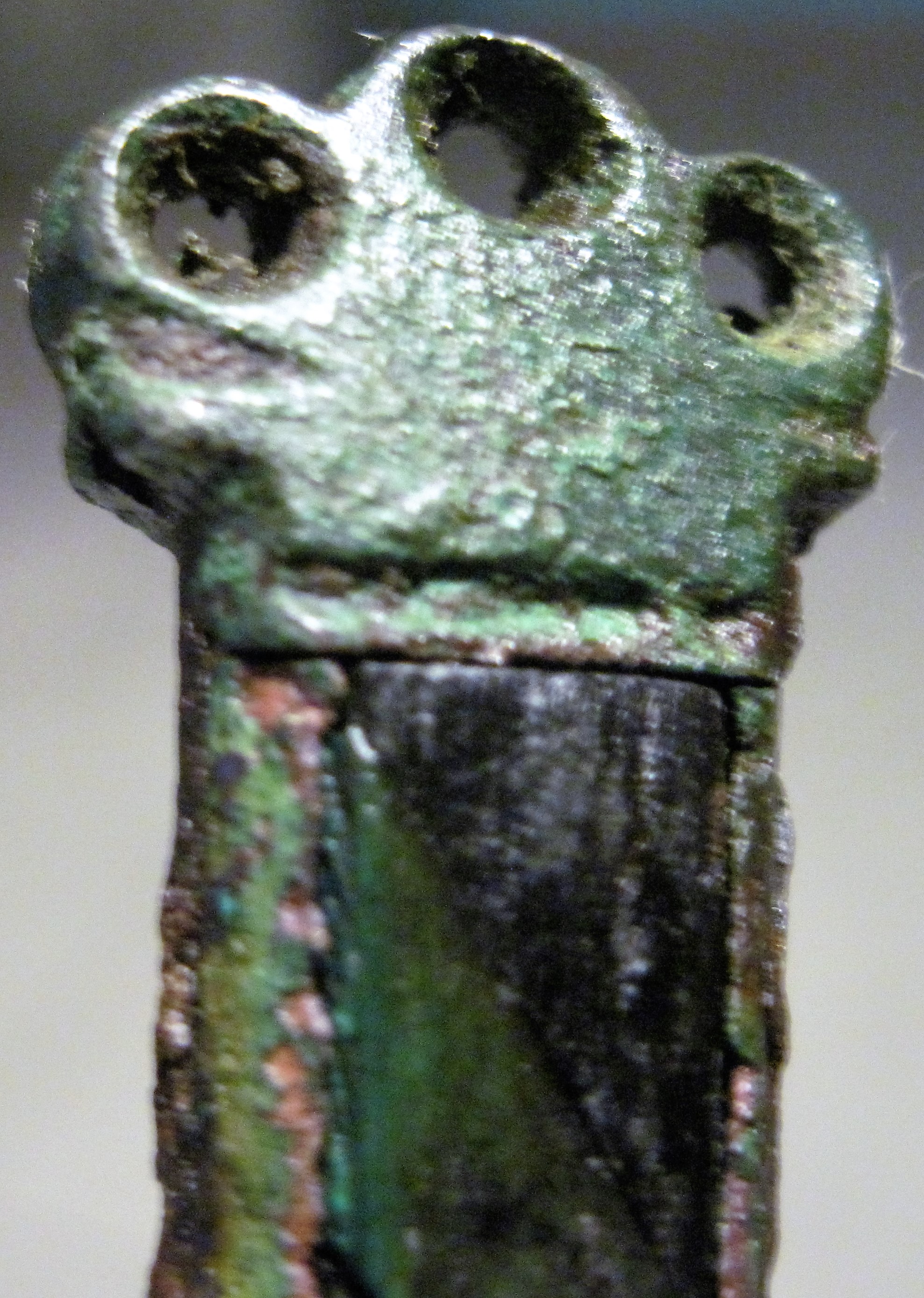 Hier ist ein Messergriff mit Holzeinlagen aus Kupfer/Messing!