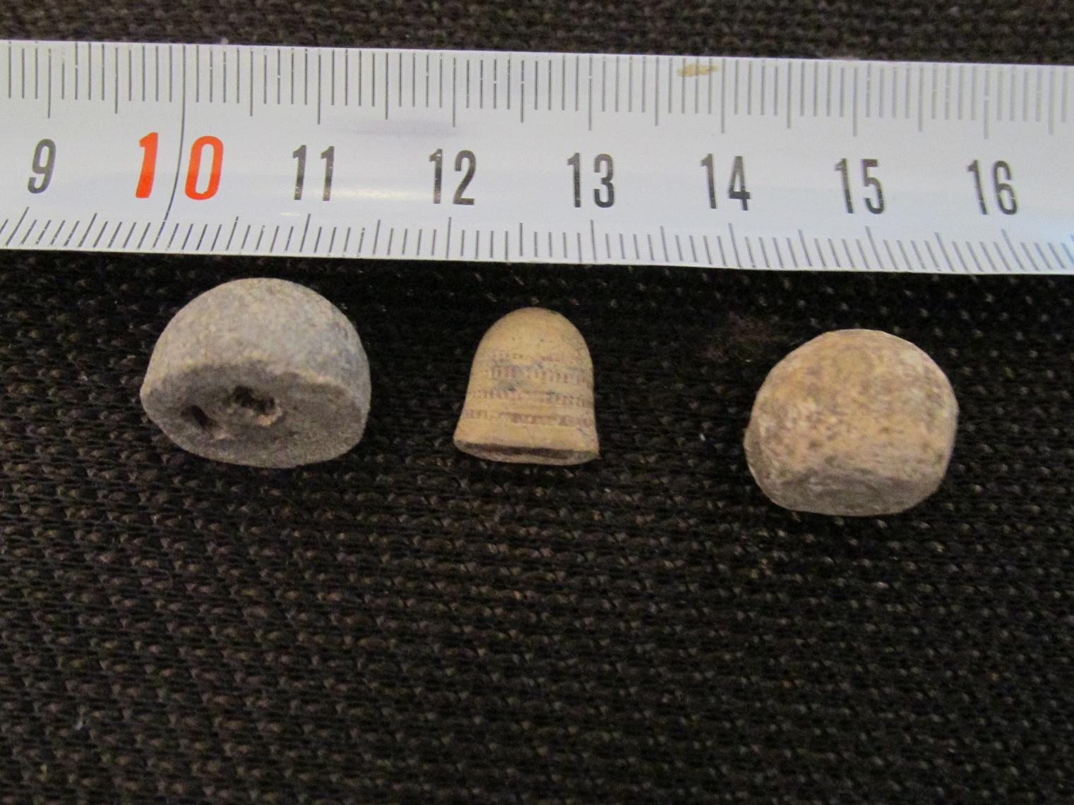 Nun, ich würde bei Nummer 1 einen alten Knopf (Rückseite) und bei Nummer 2 einen platten Fingerhut erkennen wollen. Nr. 3 geht als Kugel wohl durch, oder?